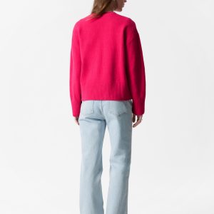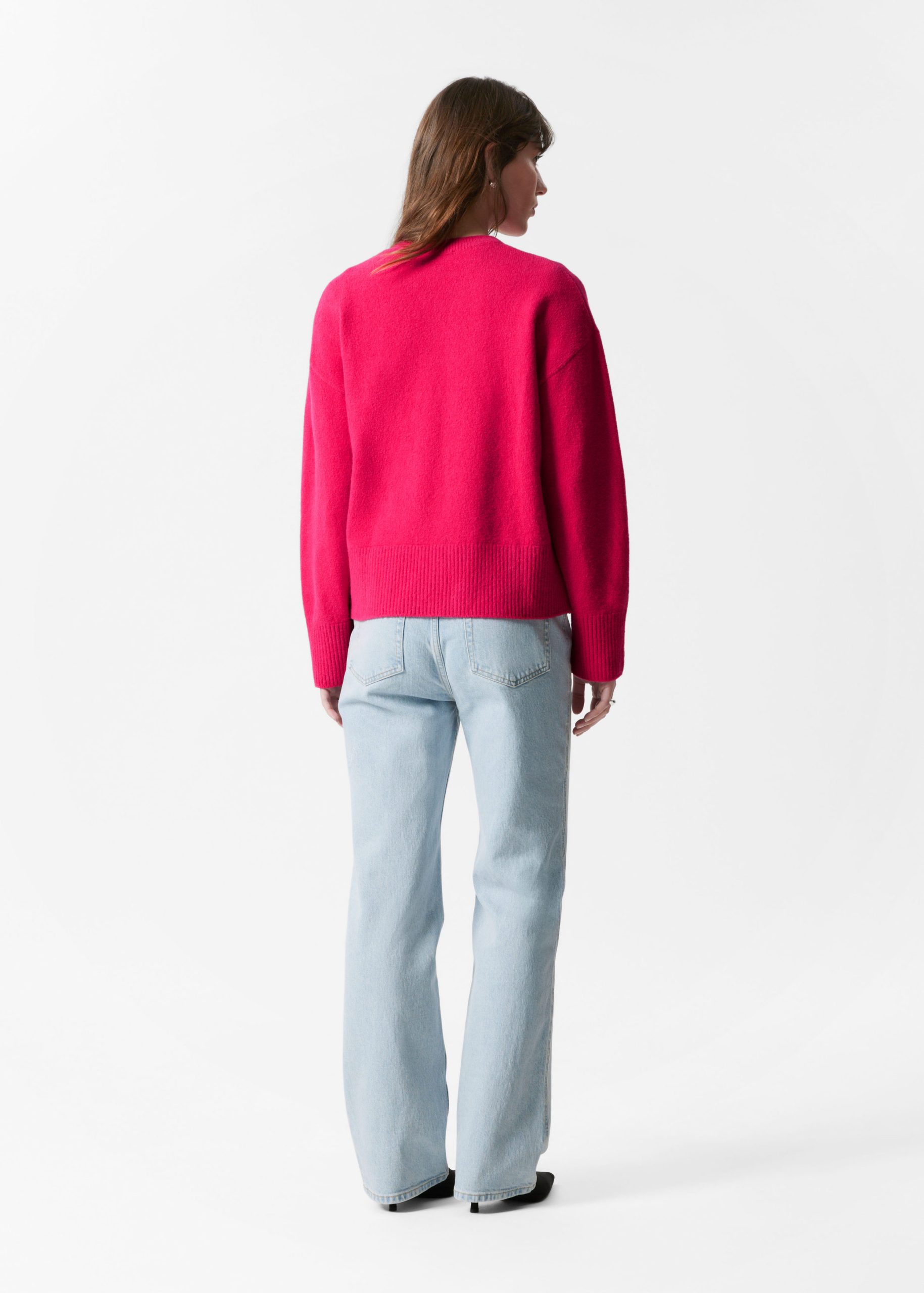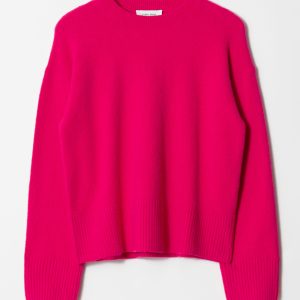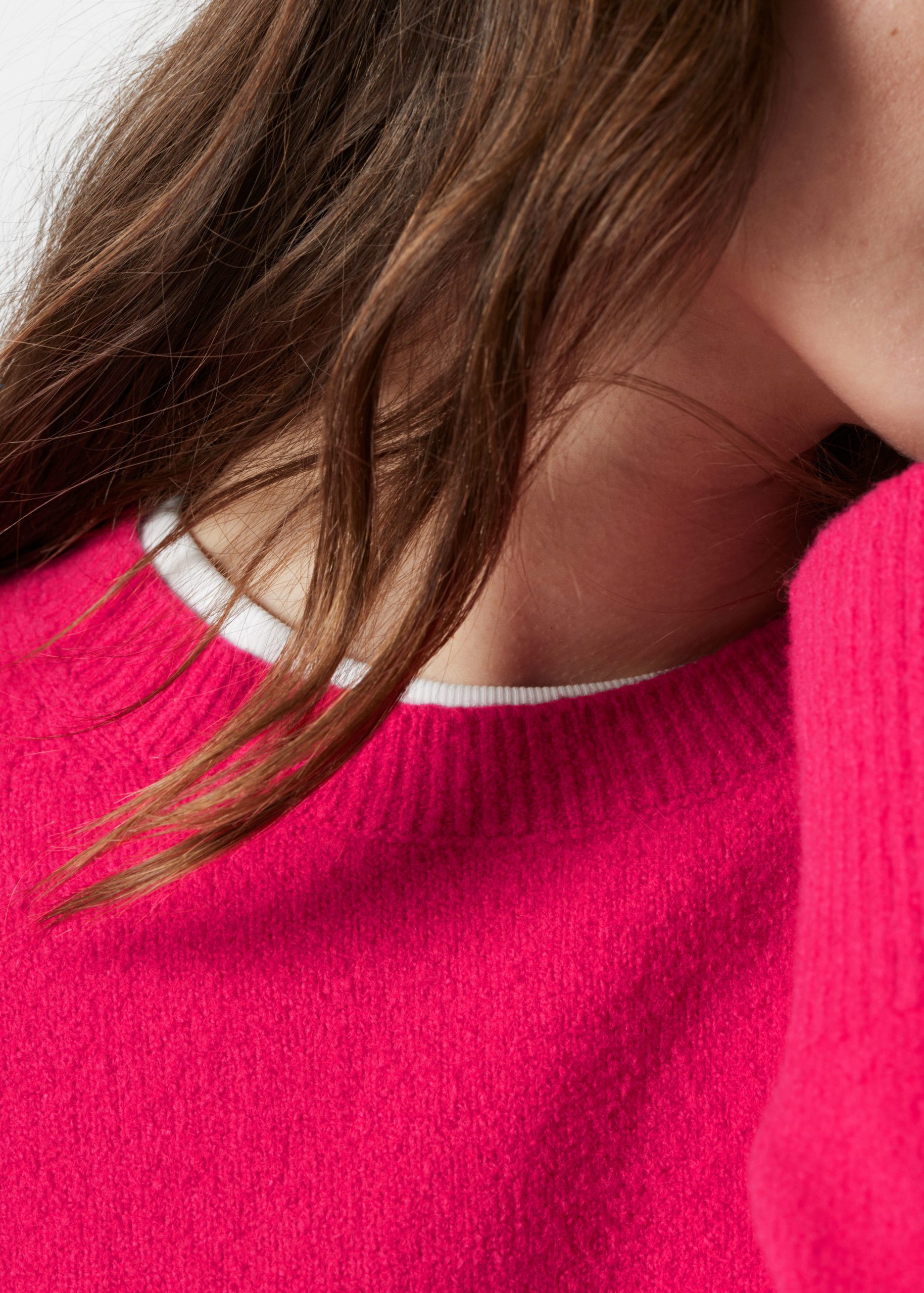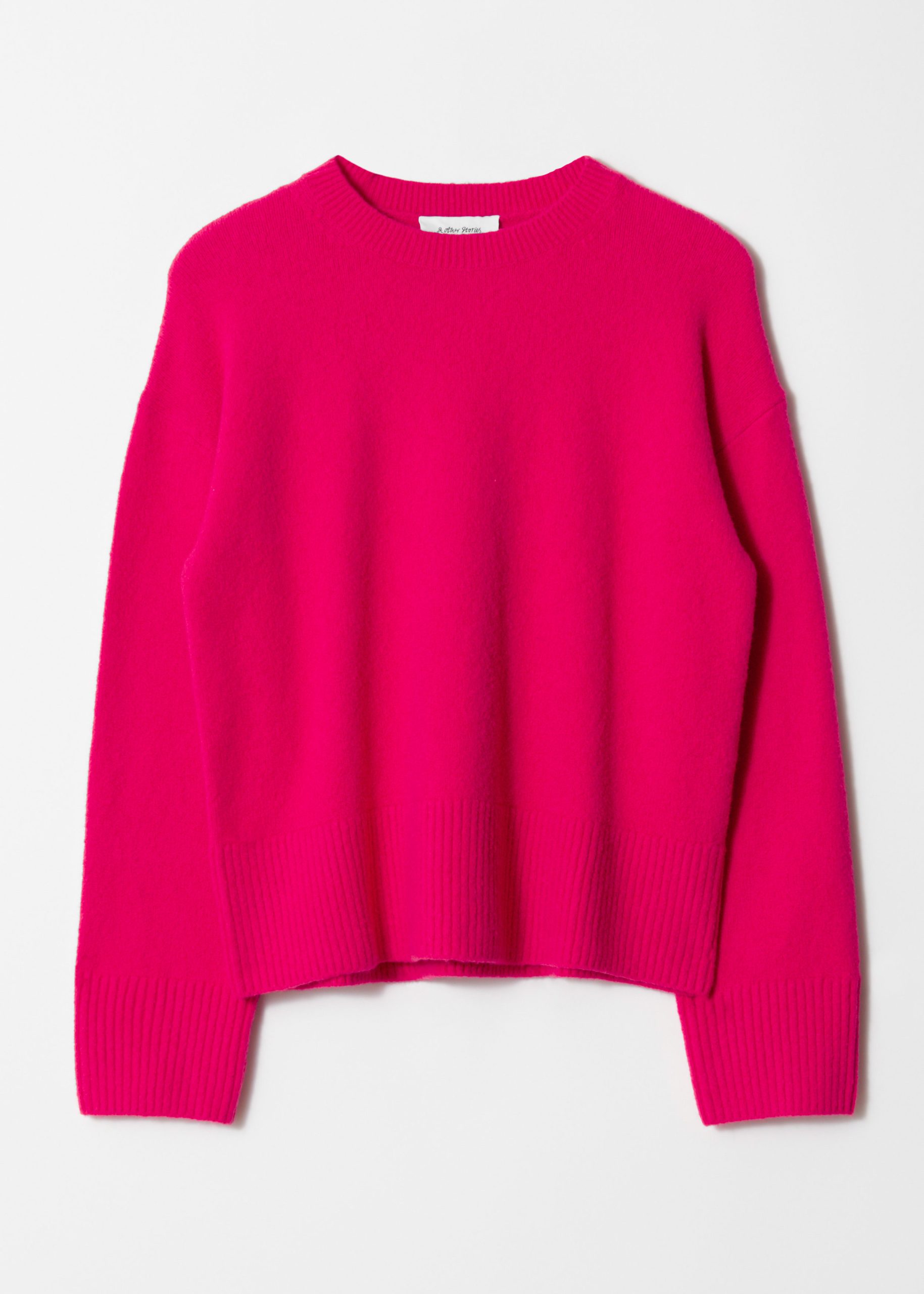 Long-sleeve knit sweater with a relaxed silhouette. Finished with a ribbed neckline, cuffs and hemline
