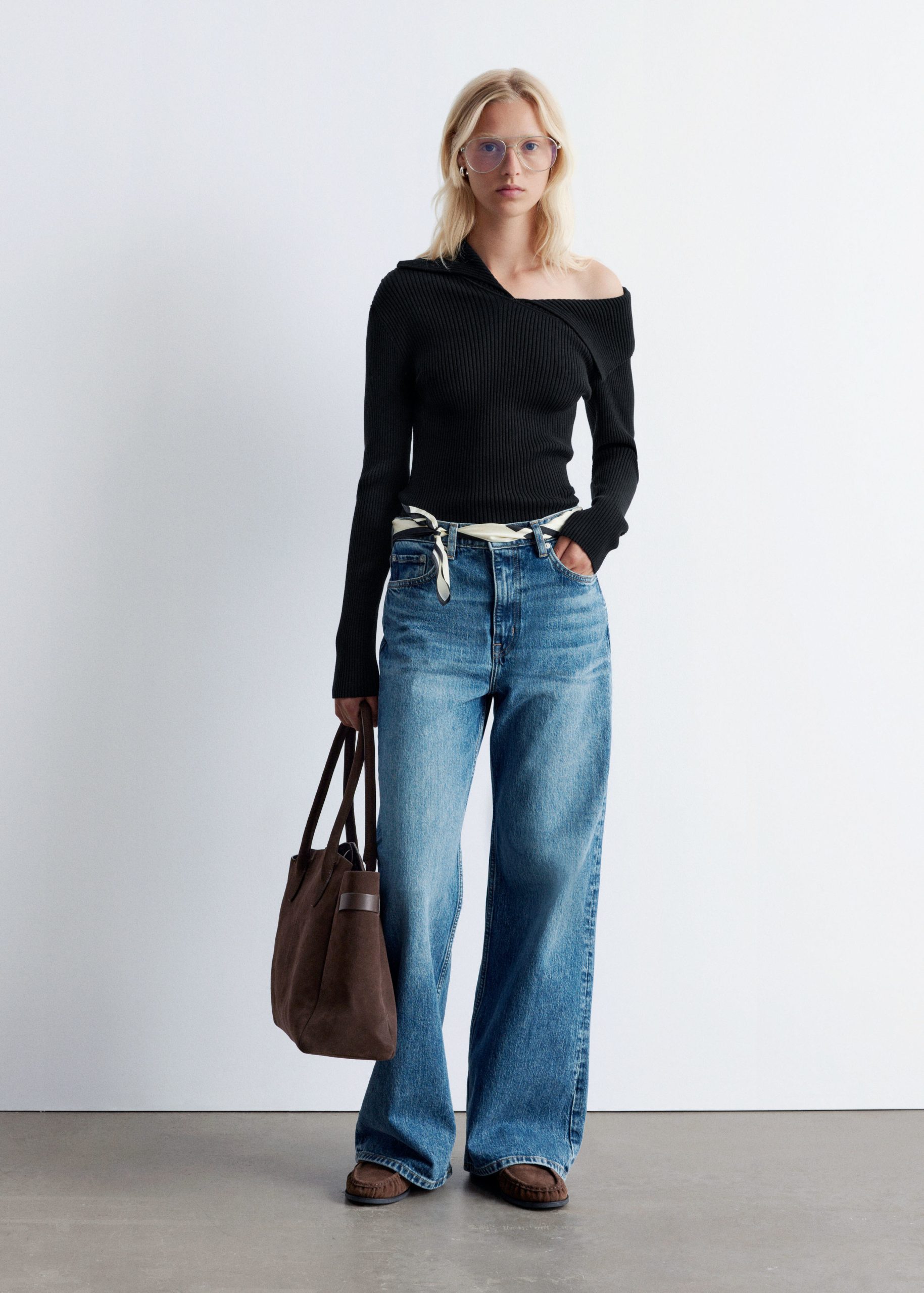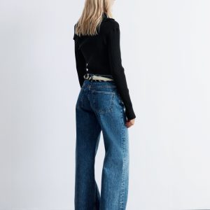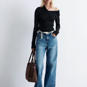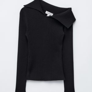 Knitted from 100% pure cotton, this long-sleeve top features a ribbed finish and a slim, form-fitting silhouette. The asymmetrical neckline is anchored by a statement sailor collar, which can be folded down for an off-shoulder look. Pair with jeans or tailored trousers.