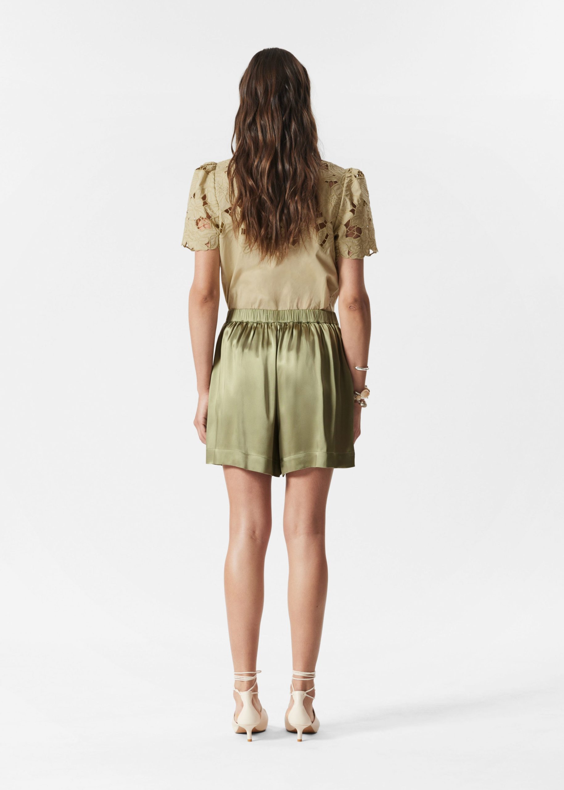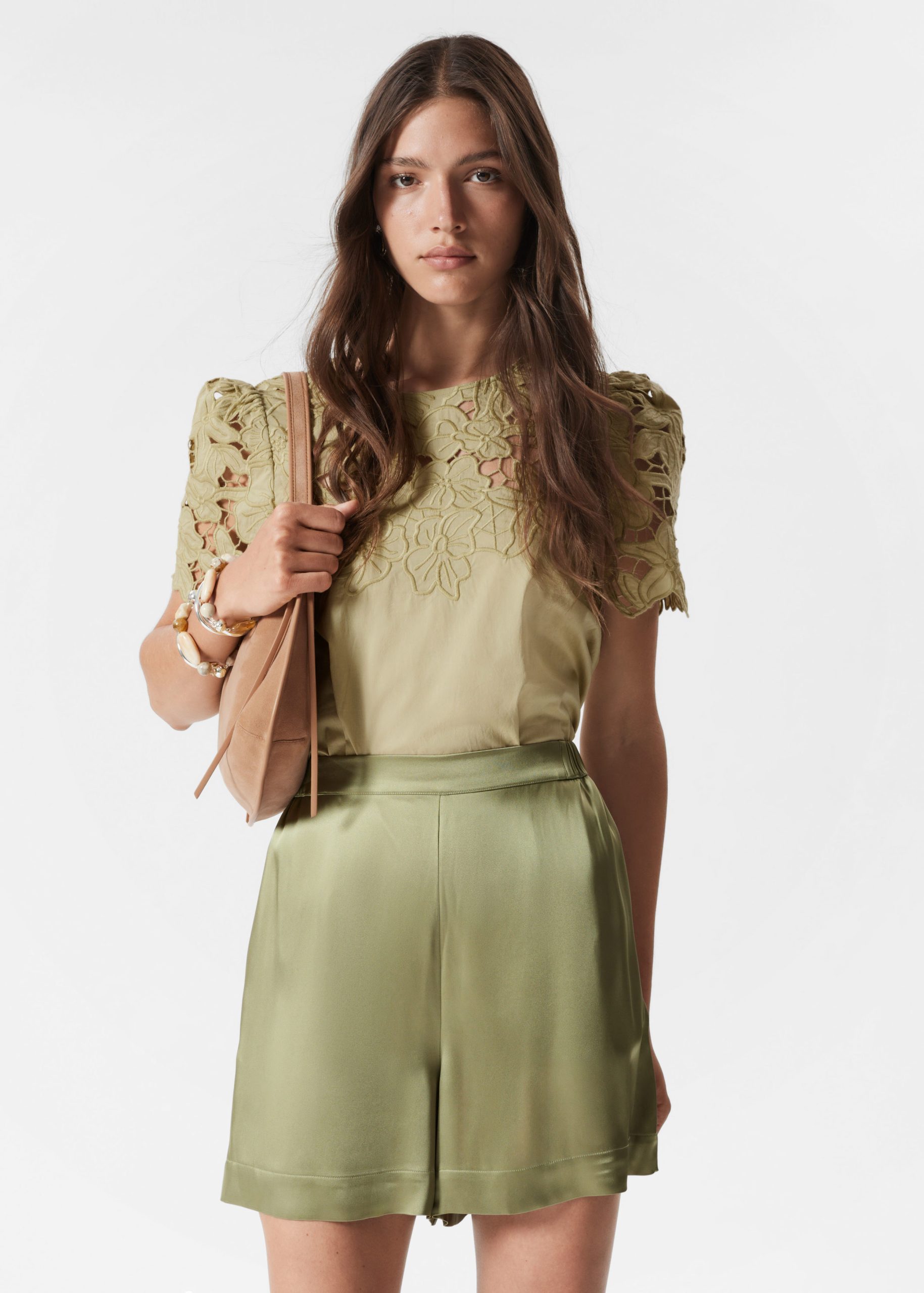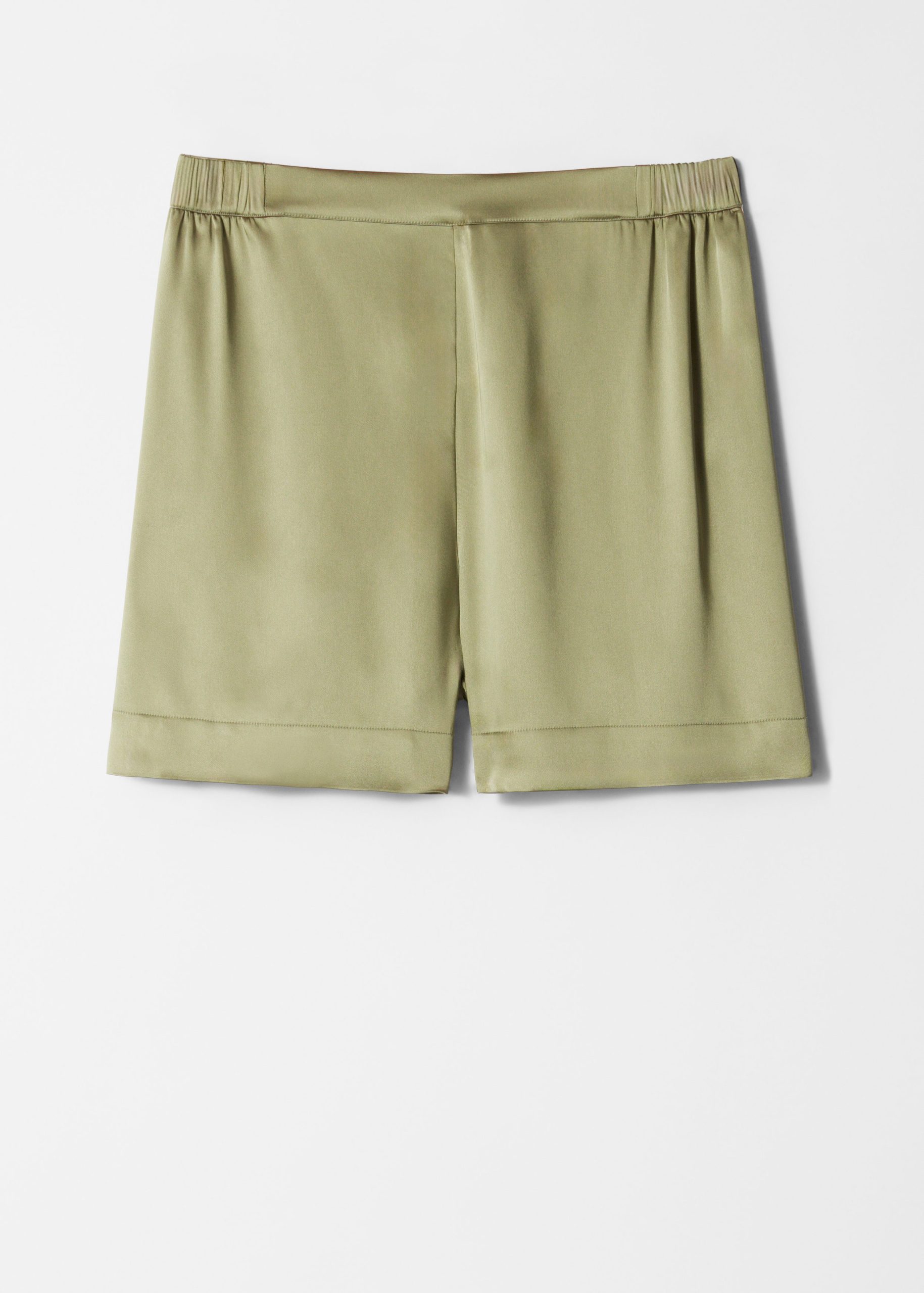 These shorts are crafted from a lustrous satin fabric with a soft-to-skin feel. Cut in a relaxed silhouette, they feature a high-rise elastic waistband for an easy pull-on fit. Pair with a t-shirt or tank top on balmy summer days.