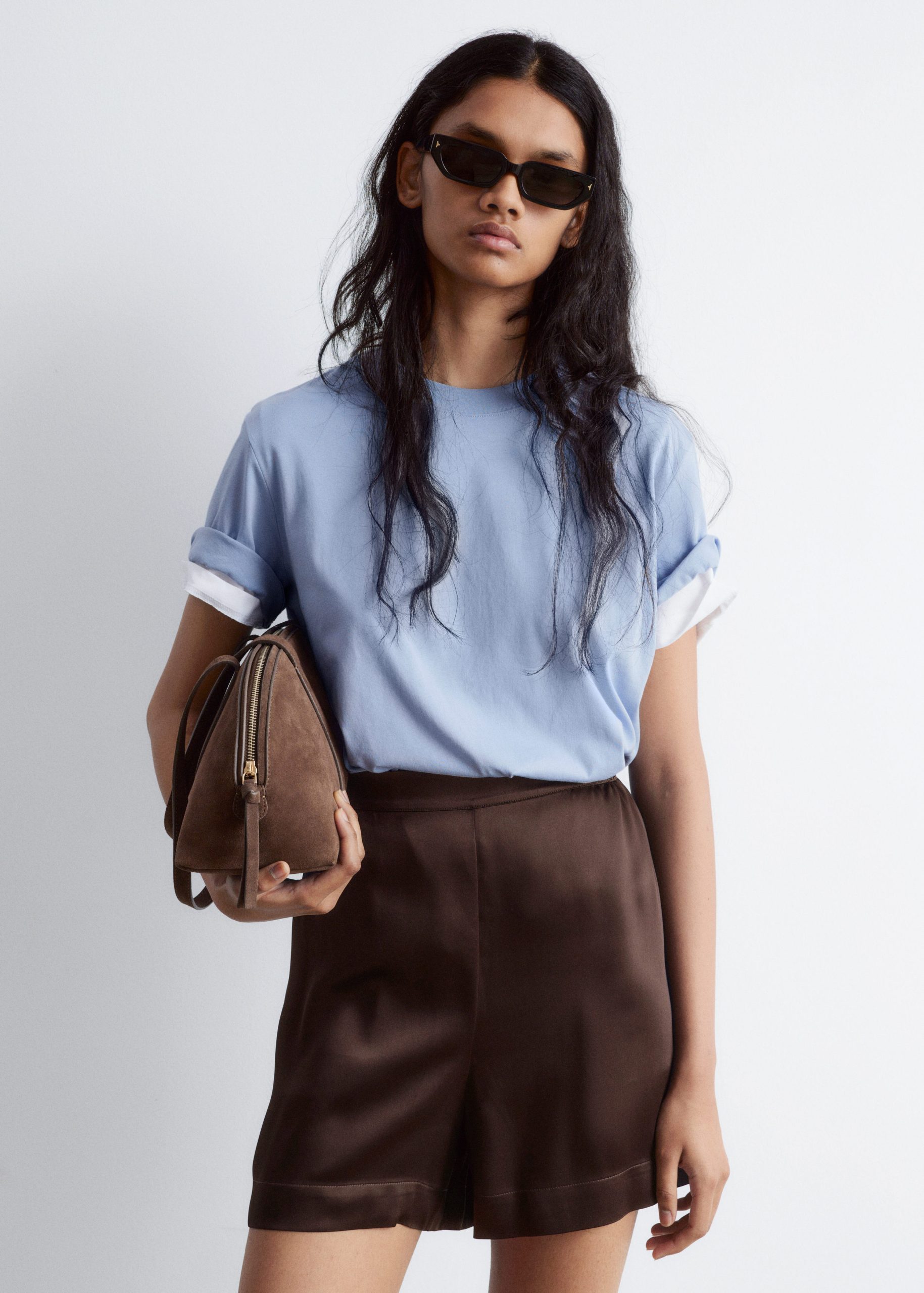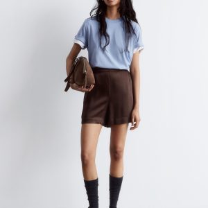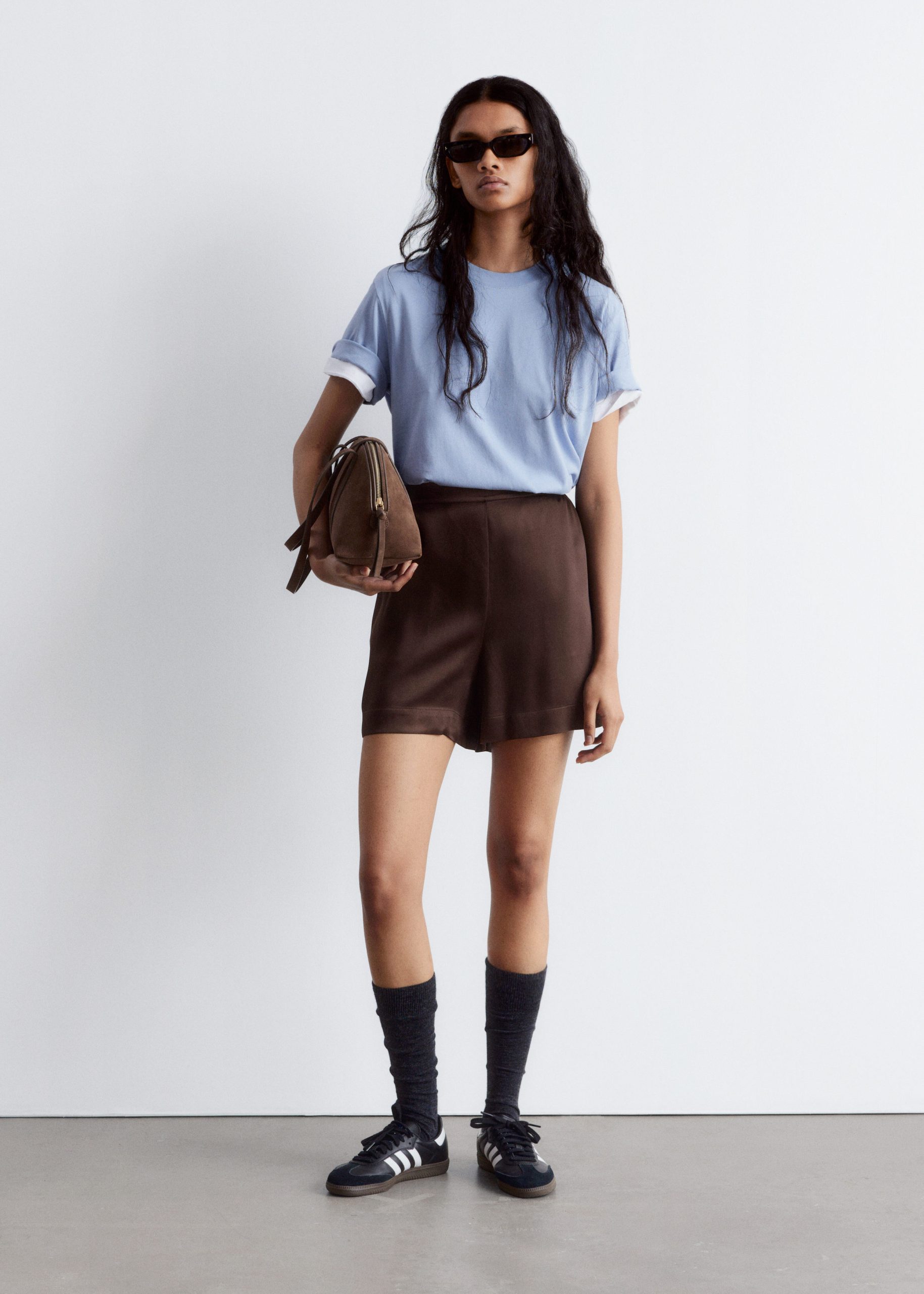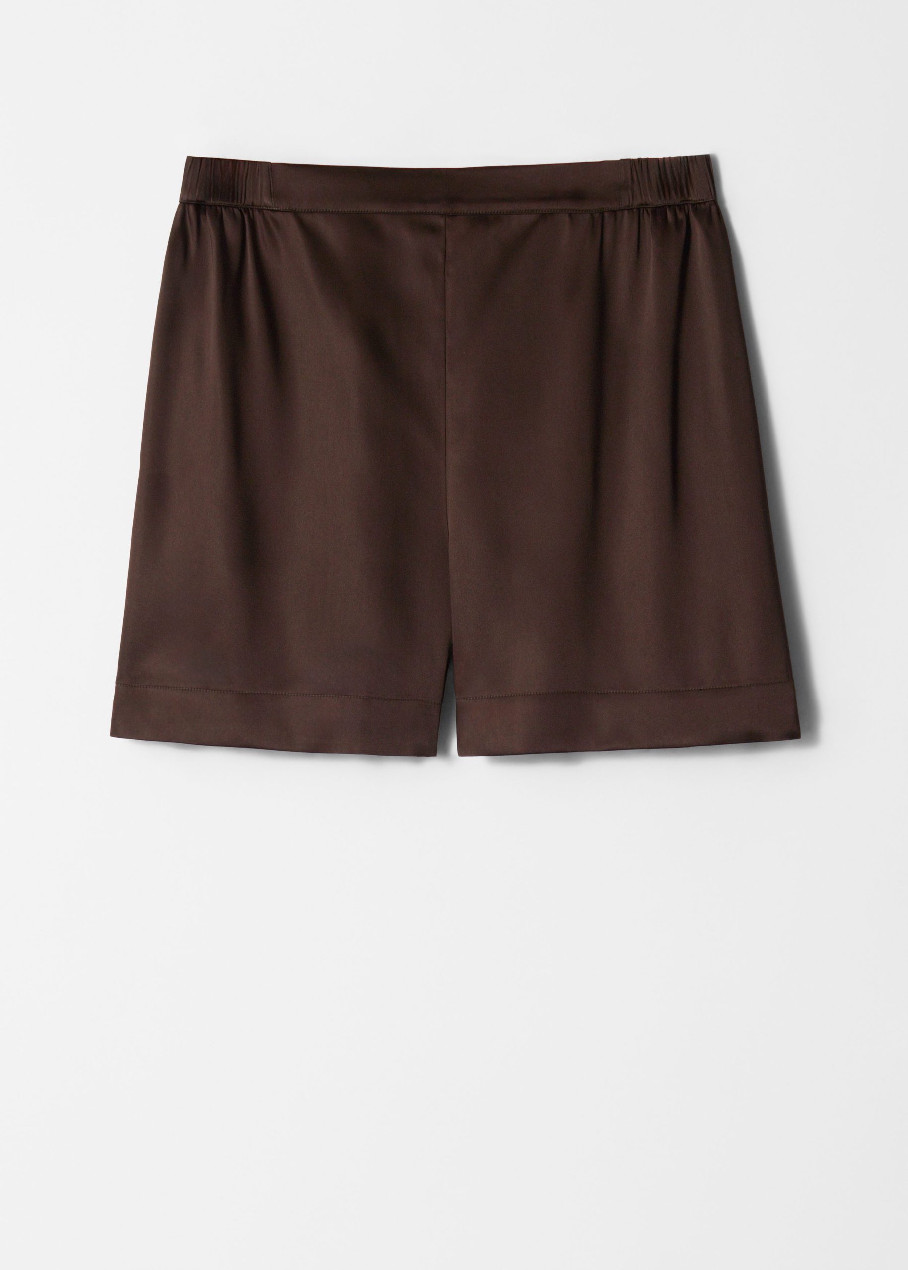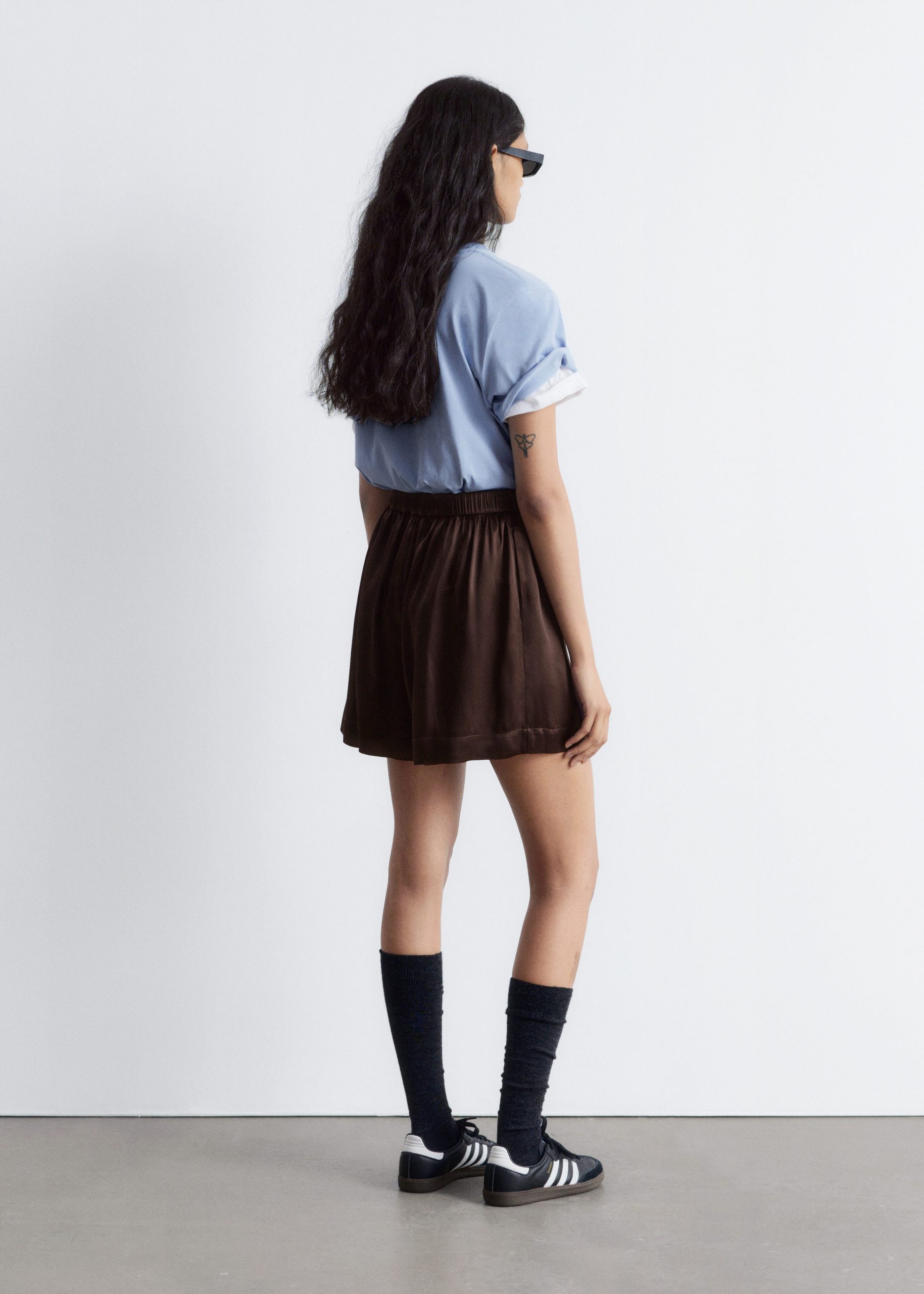These shorts are crafted from a lustrous satin fabric with a soft-to-skin feel. Cut in a relaxed silhouette, they feature a high-rise elastic waistband for an easy pull-on fit. Pair with a t-shirt or tank top on balmy summer days.