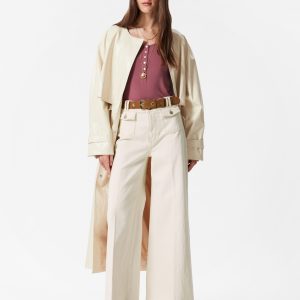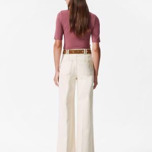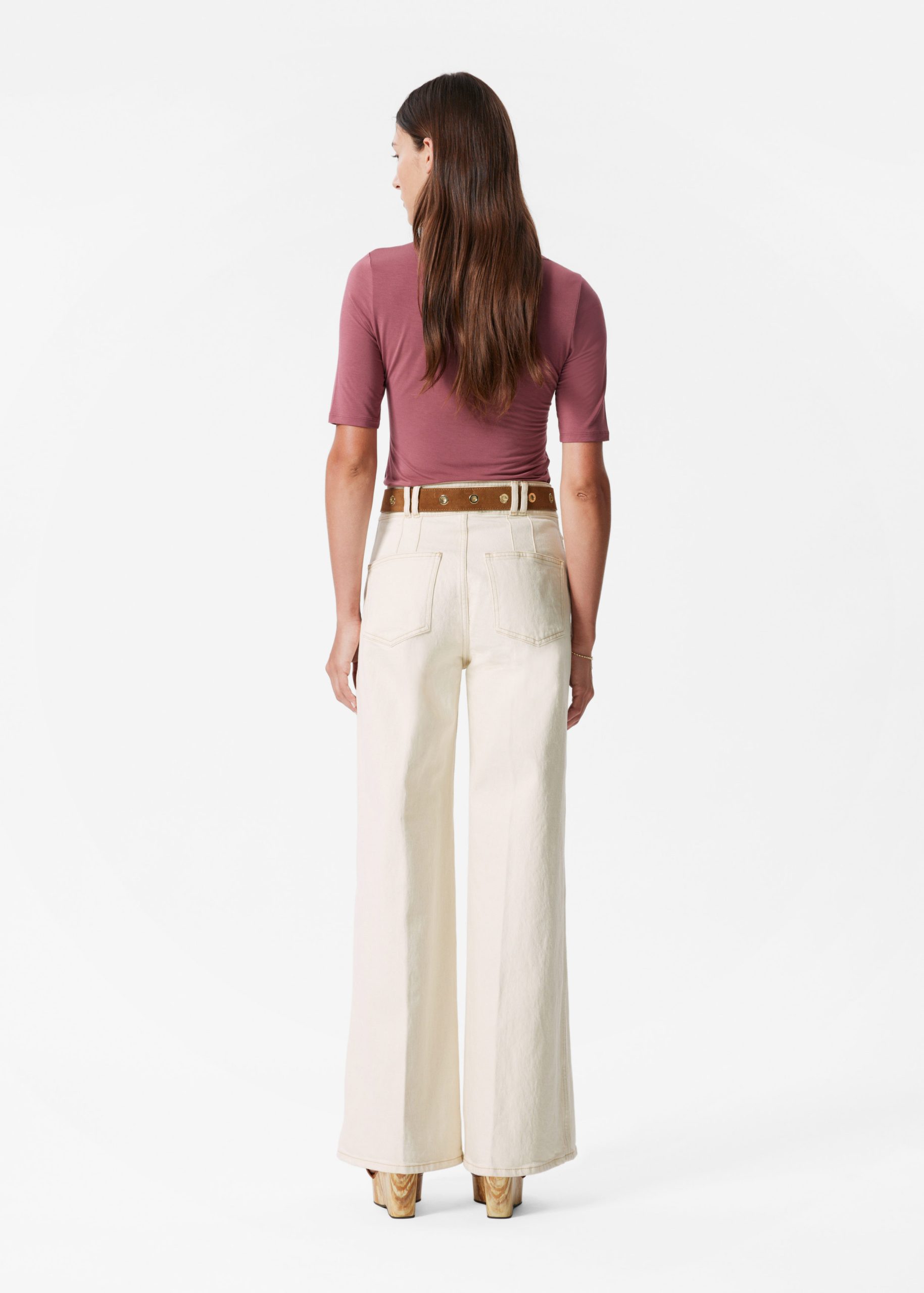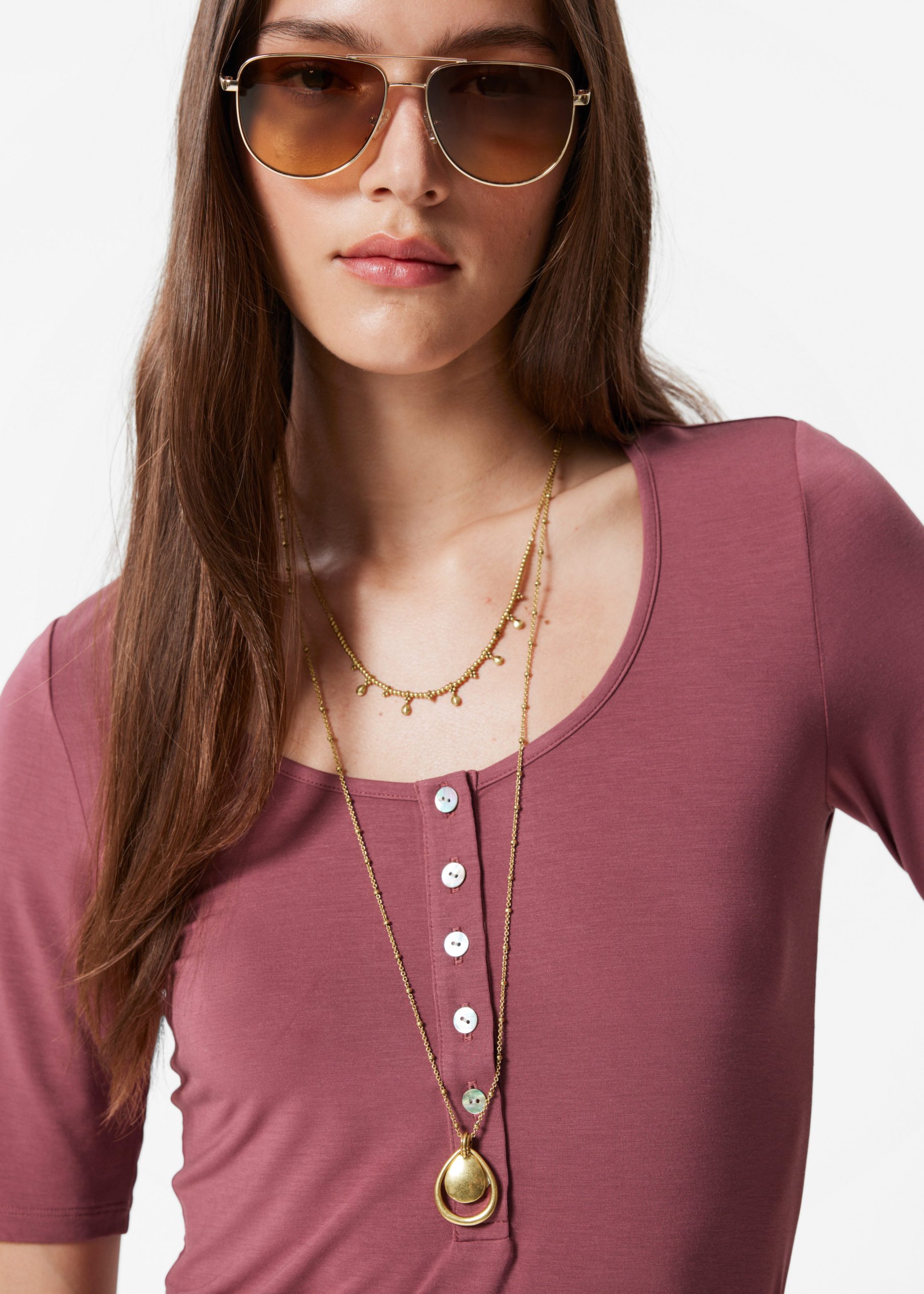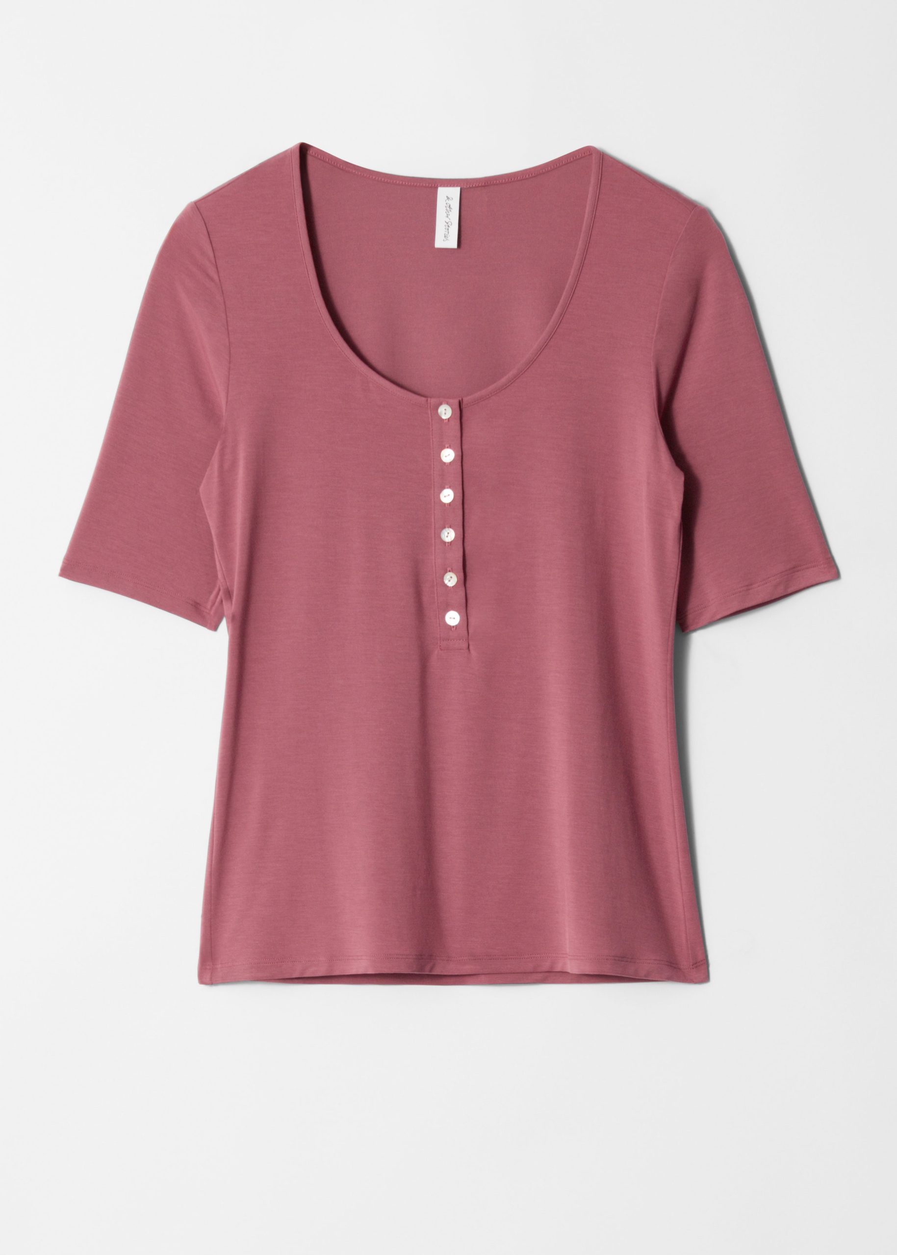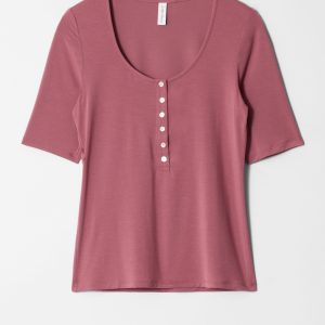 T-shirt crafted from a soft and stretchy jersey fabric. Cut in a slim-fitting silhouette featuring a deep scoop neck and a front placket traced with buttons.Â