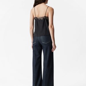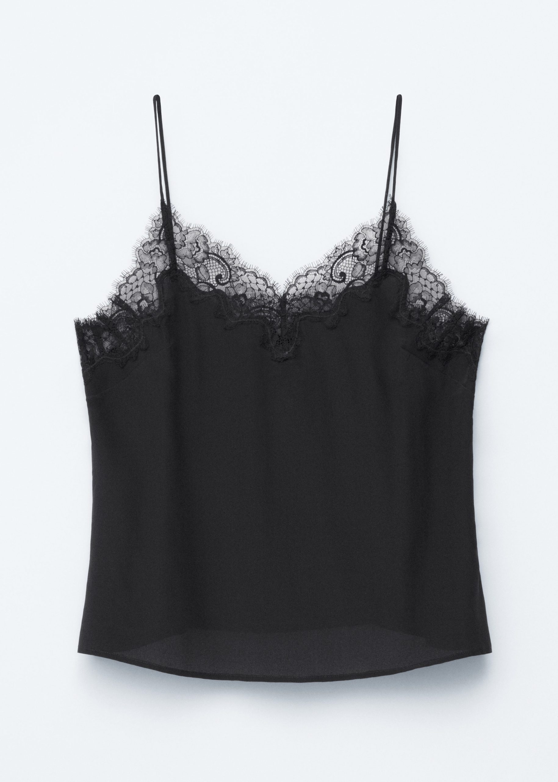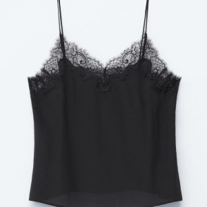This minimalist camisole is a revived ’90s icon, perfectly paired with jeans for an elevated everyday look. Crafted from 100% mulberry silk, it features a classic v-neck accented by delicate lace, and is held up by thin shoulder straps. Finished with three elastic loop buttons at the side.