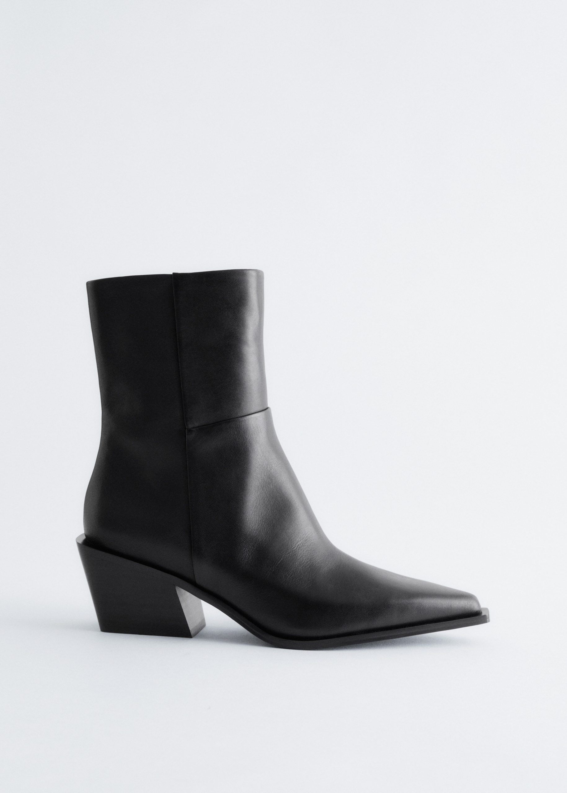 These exquisite boots are designed with Western-inspired details, like stacked Cuban heels and angular pointed toes. They’ve been crafted in Portugal from smooth leather and have concealed side zippers and hidden elasticated inserts for easy on-and-off.