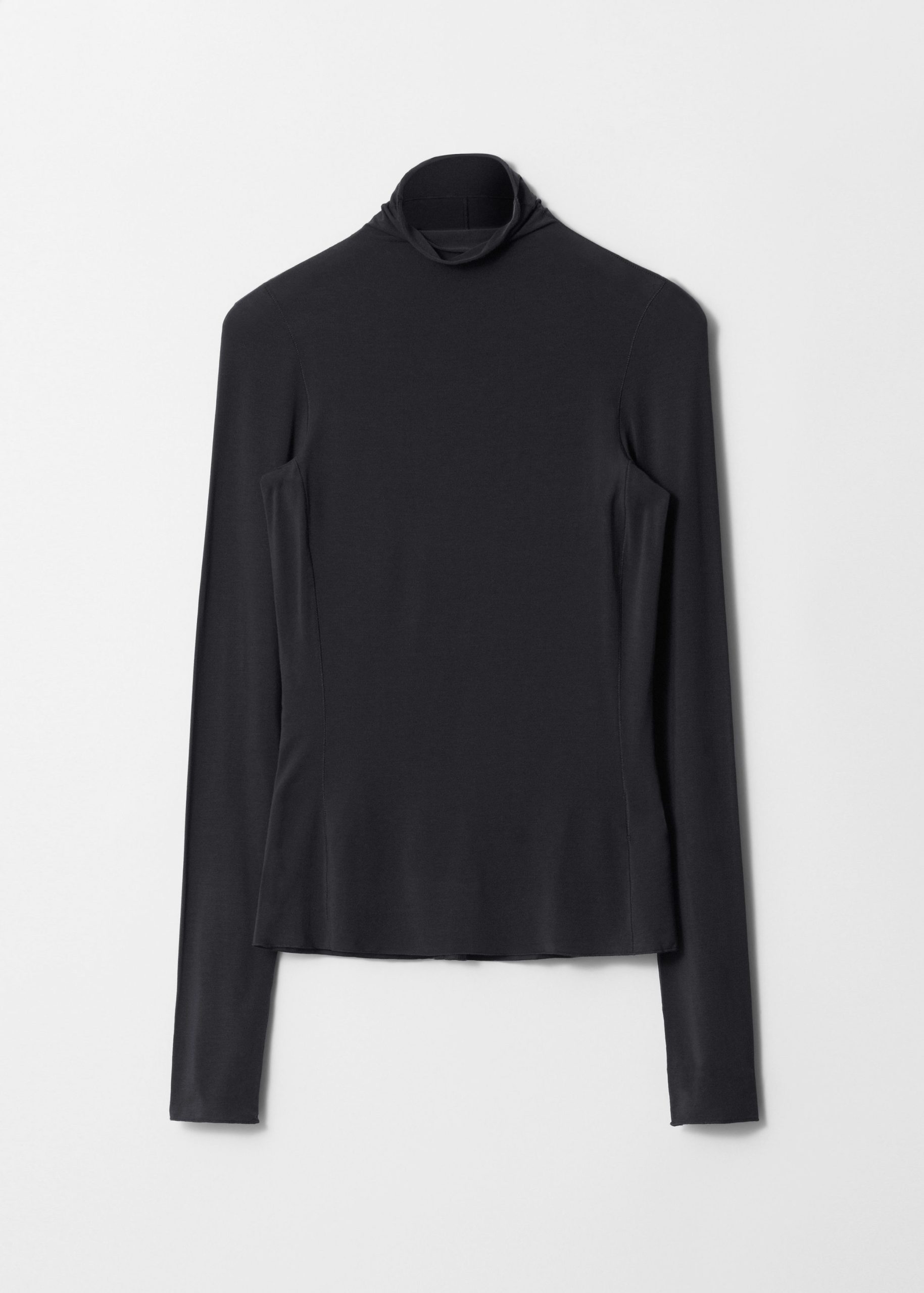 Form-fitting turtleneck top with long sleeves. Made from a soft modal blend.