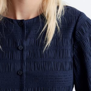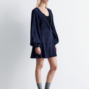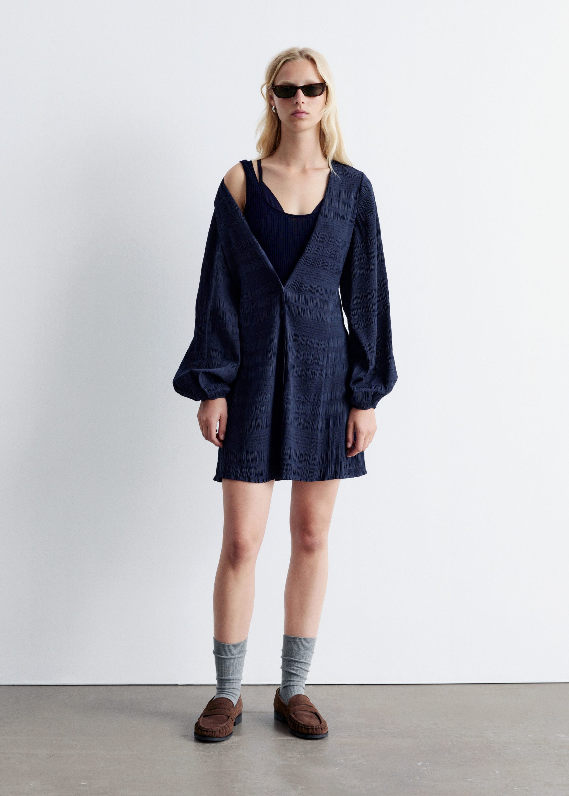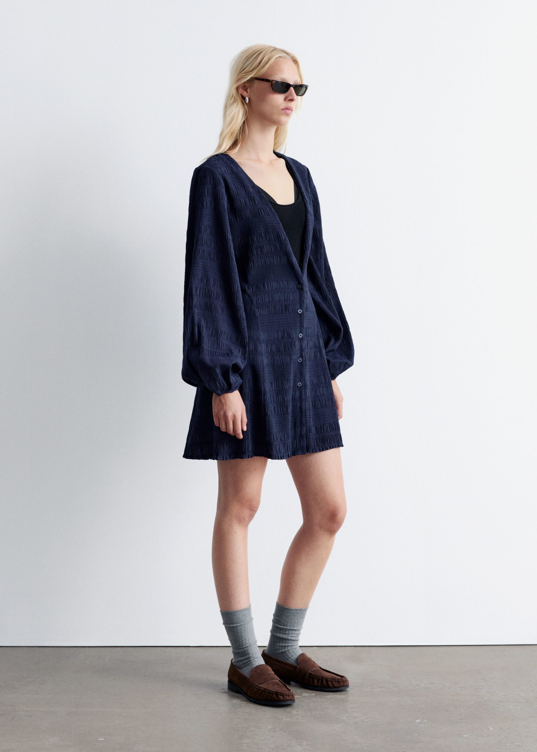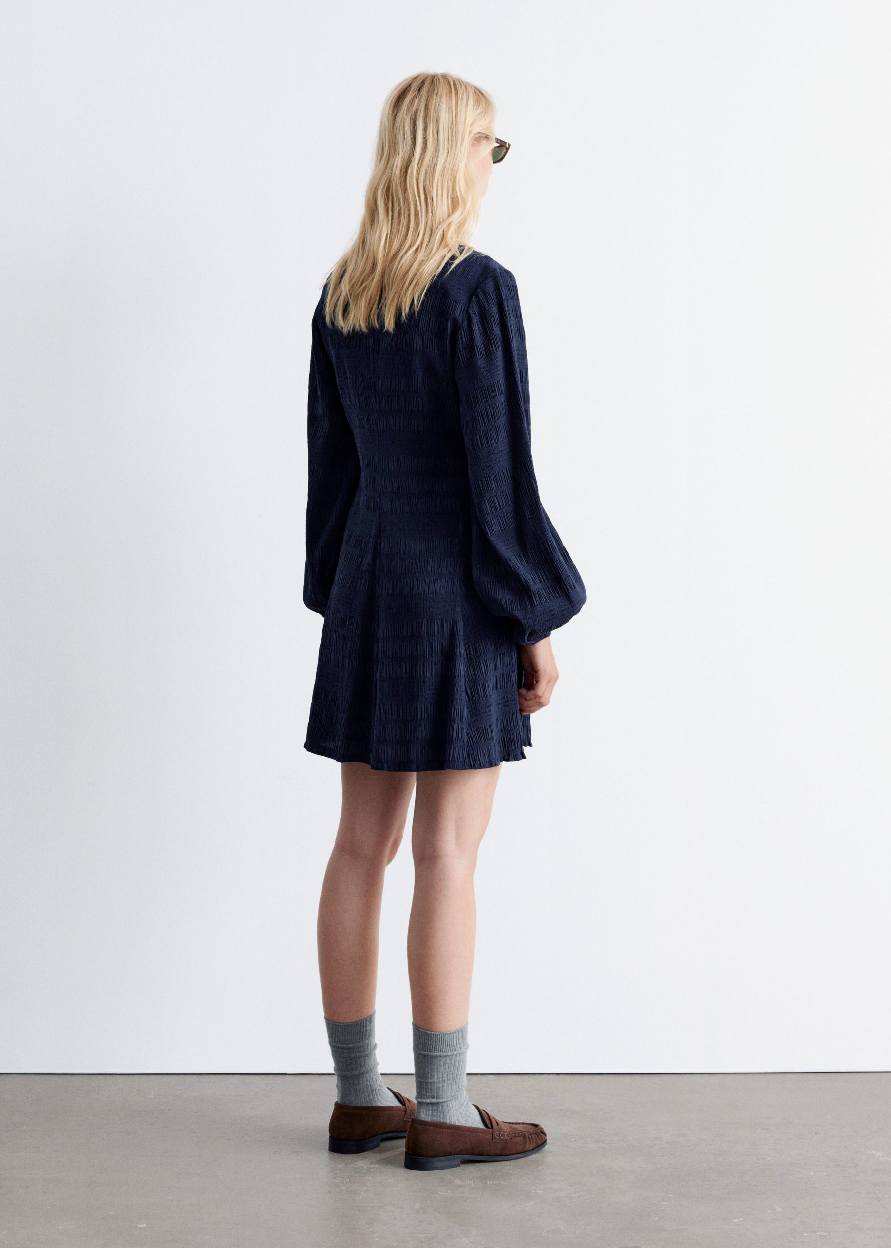 Smocked Balloon-Sleeve Mini Dress