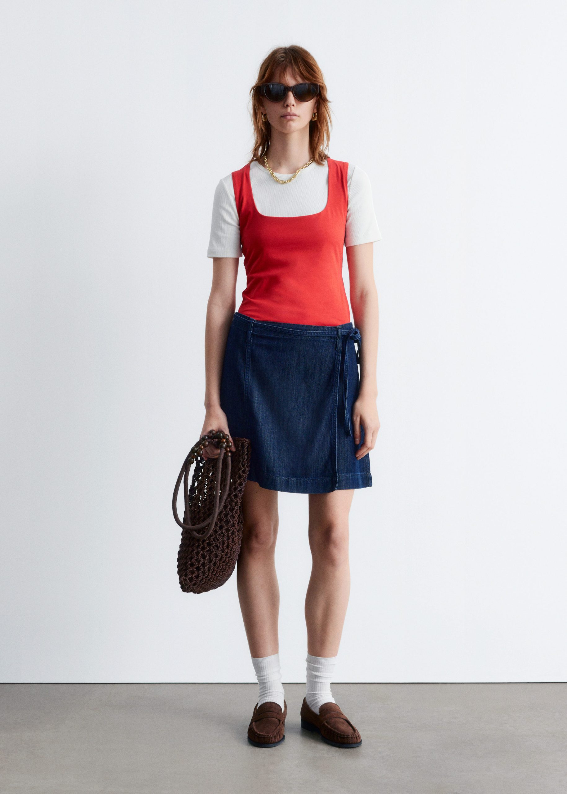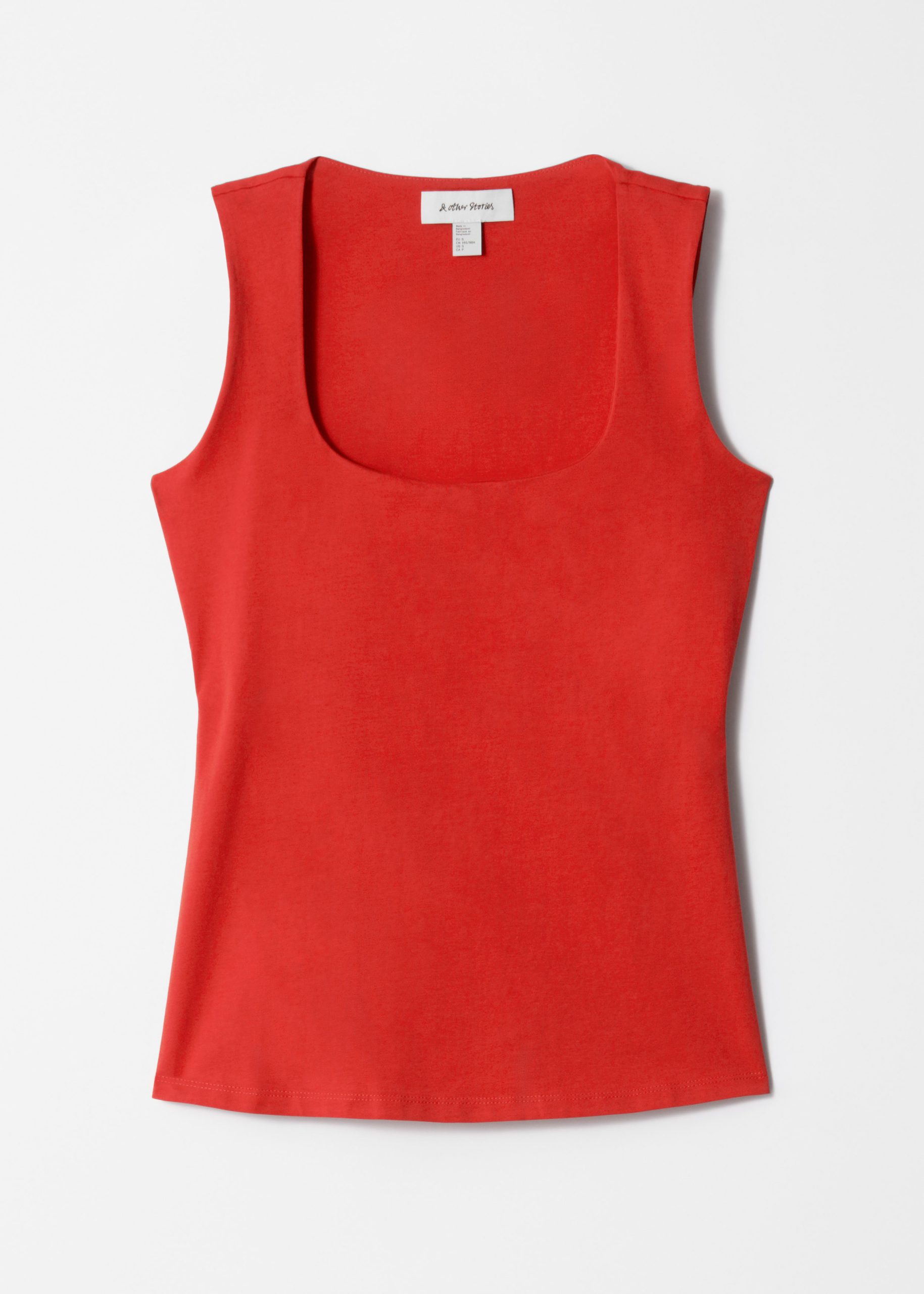 This minimalist tank top is crafted from a soft jersey cotton blend, offering a next-to-skin feel. Cut in a slim fit silhouette, it features a square neckline and broad shoulder straps. Pair it with jeans or a skirt.