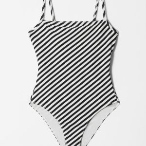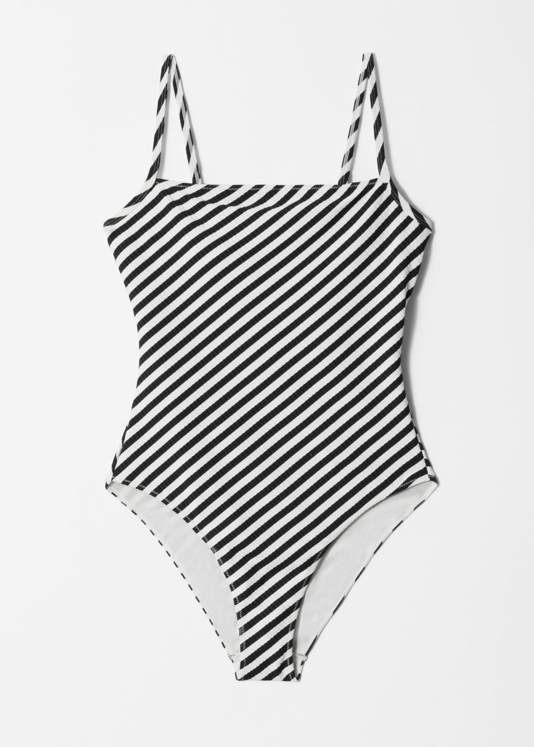 Swimsuit designed in a classic silhouette with a straight neckline and a low-cut back, complemented by thin, adjustable straps for a customizable fit. It features light padding that offers shaping and support, which can be removed for a more natural feel.