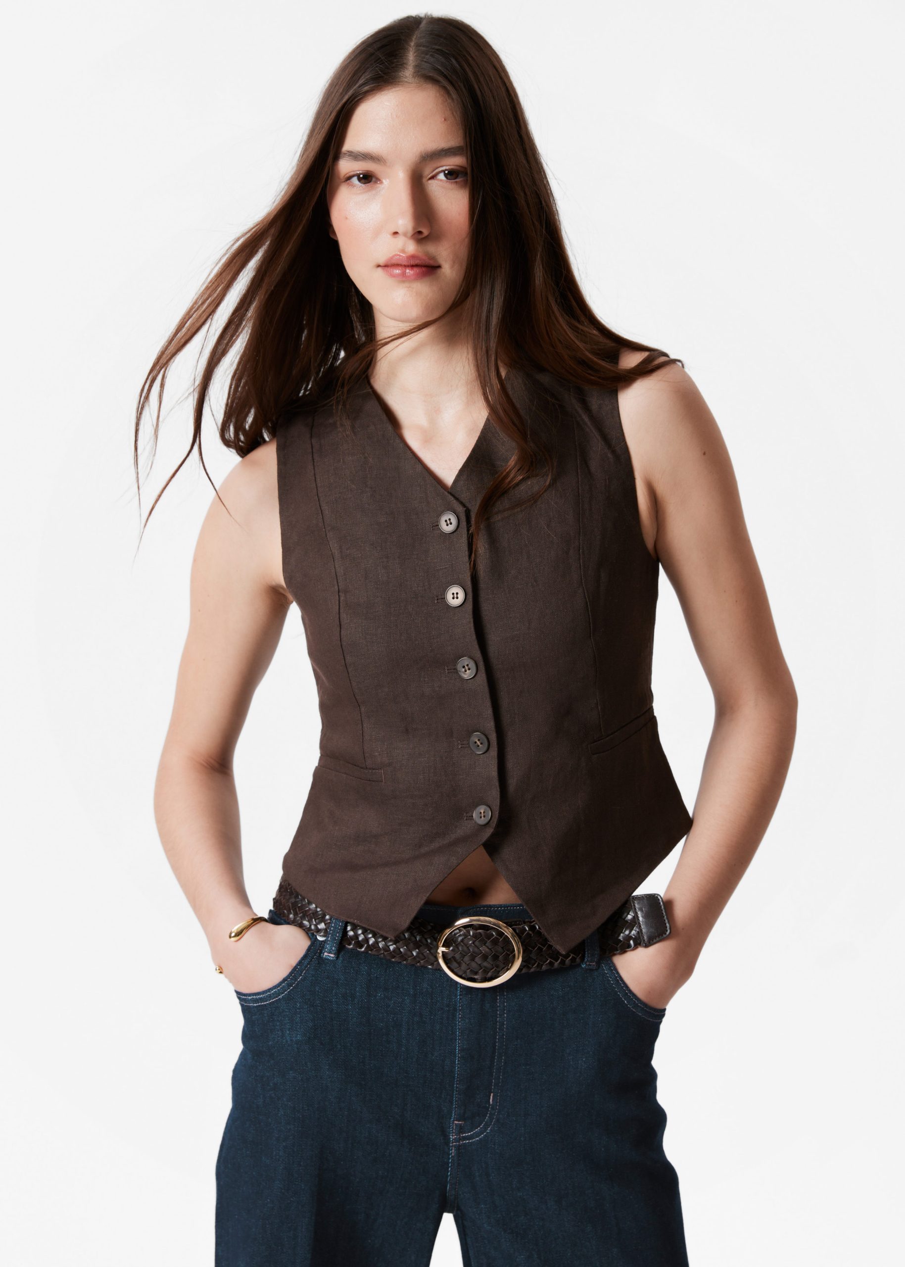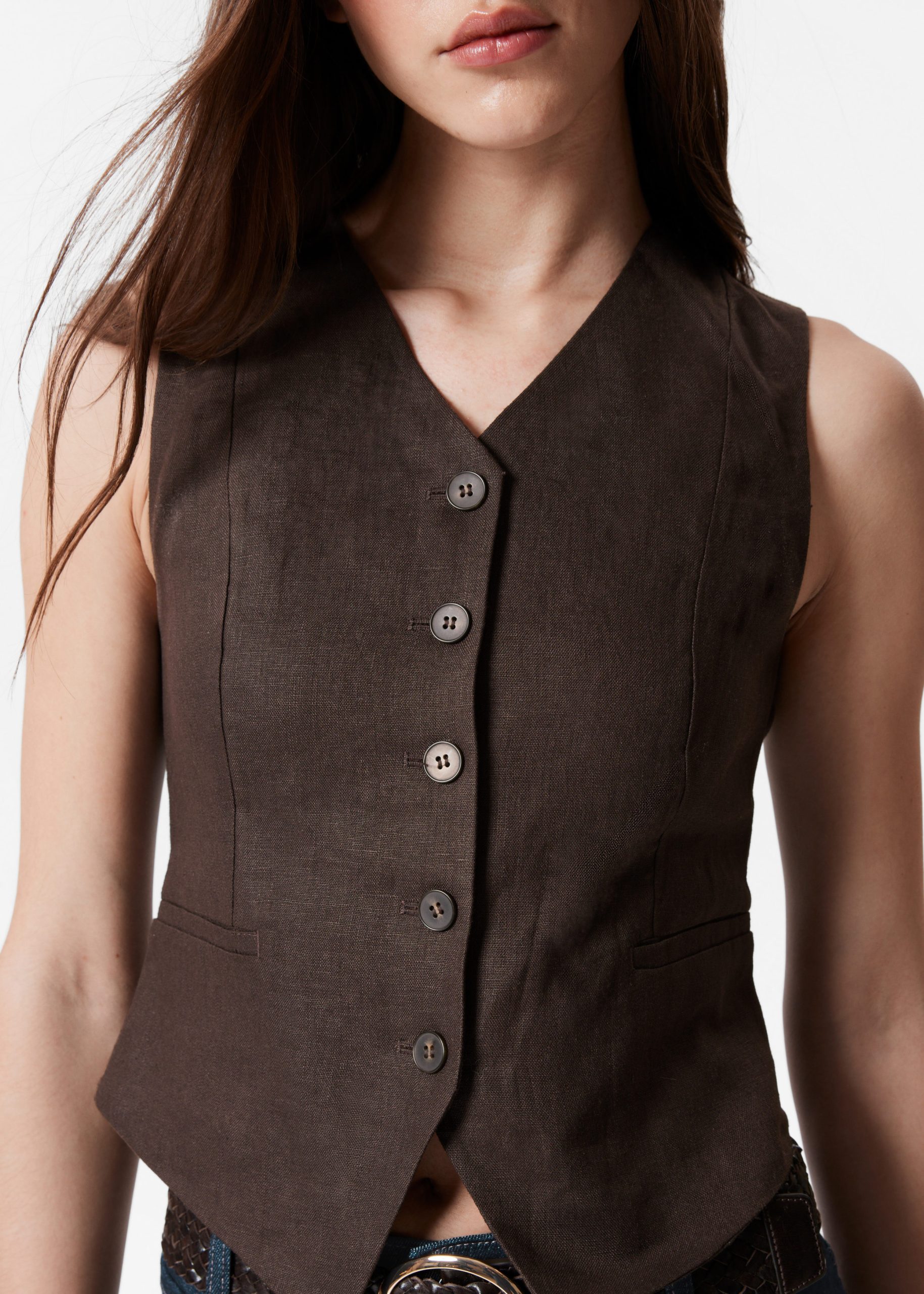 Buttoned vest crafted from breezy linen.