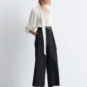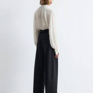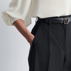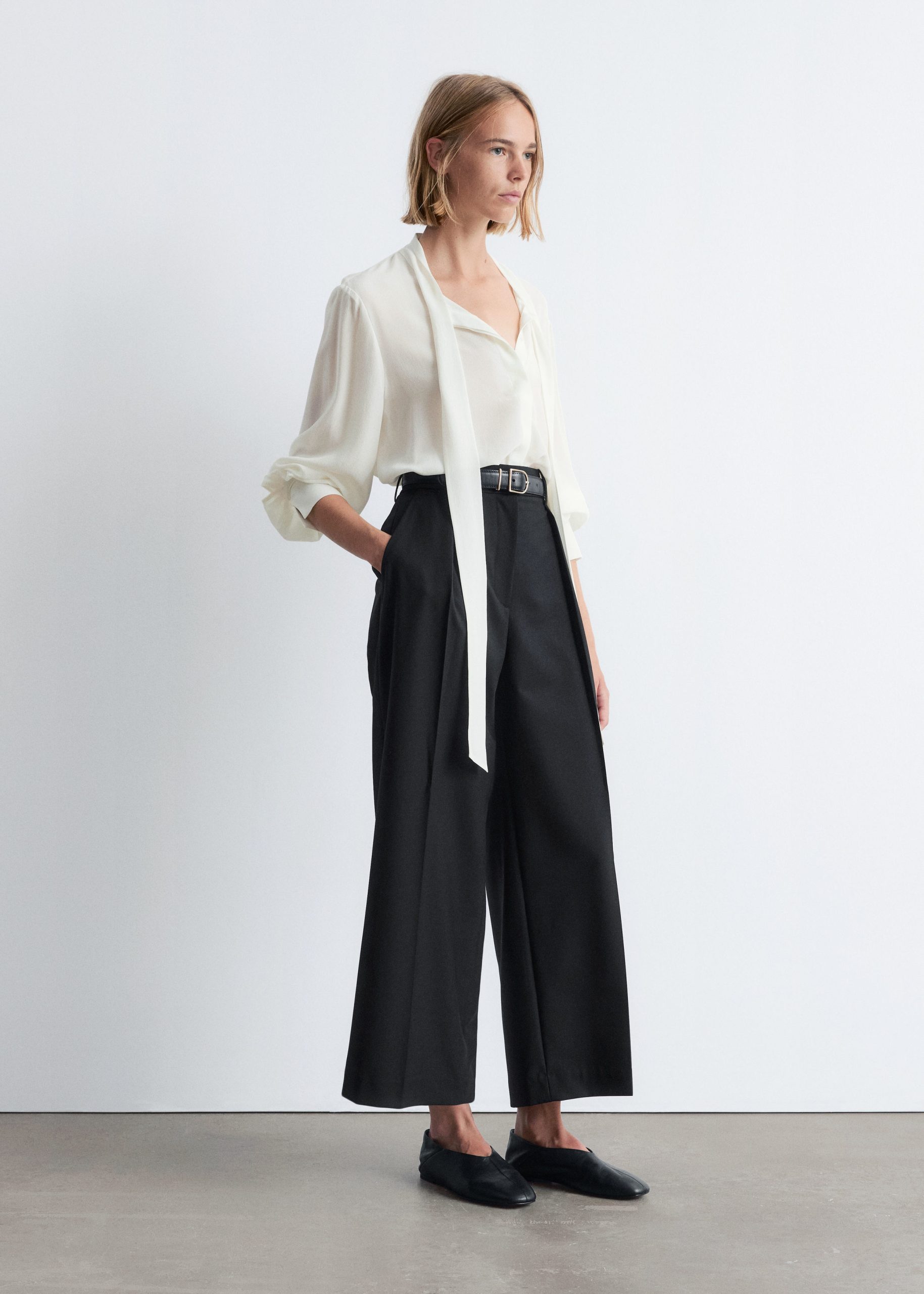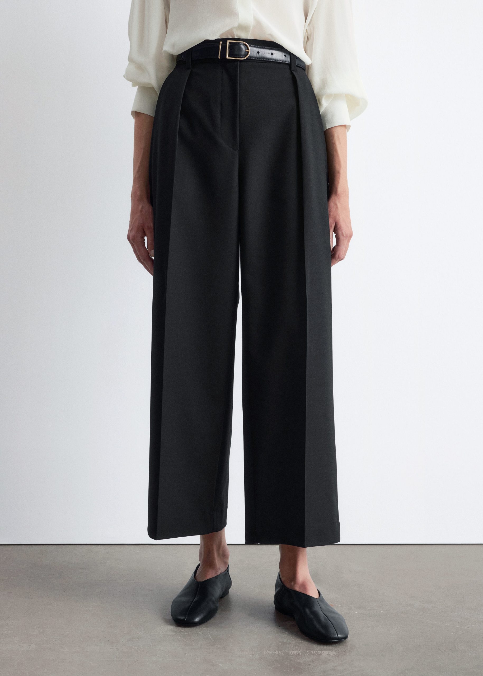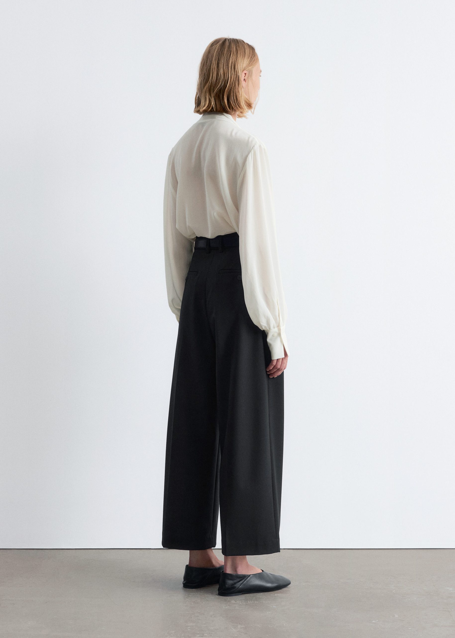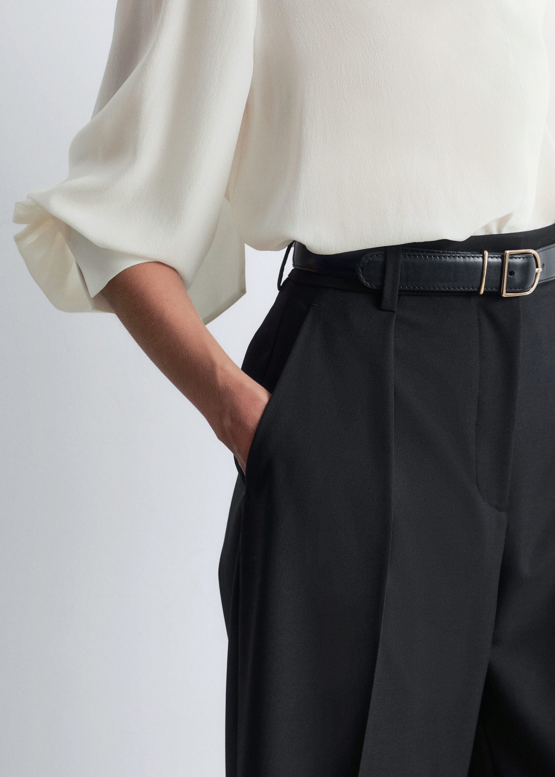 Tailored from lightweight wool-blend twill, these trousers are cut to a straight, ankle-length silhouette with sharp press creases. Finished with discreet side-seam pockets, back welt pockets, and a clean zip-and-button closure.