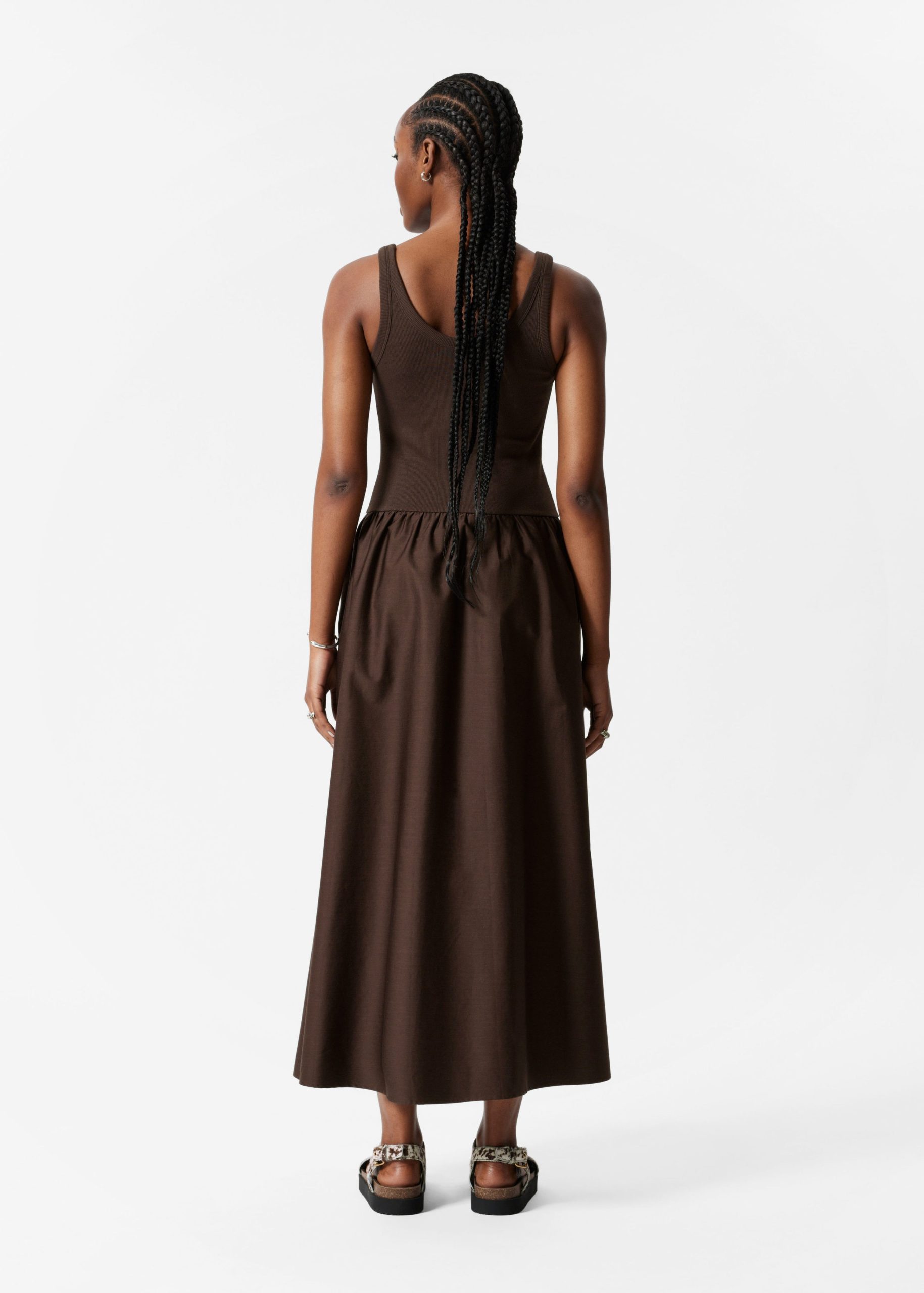 Jersey tank midi dress that gently flares at the waistline.