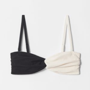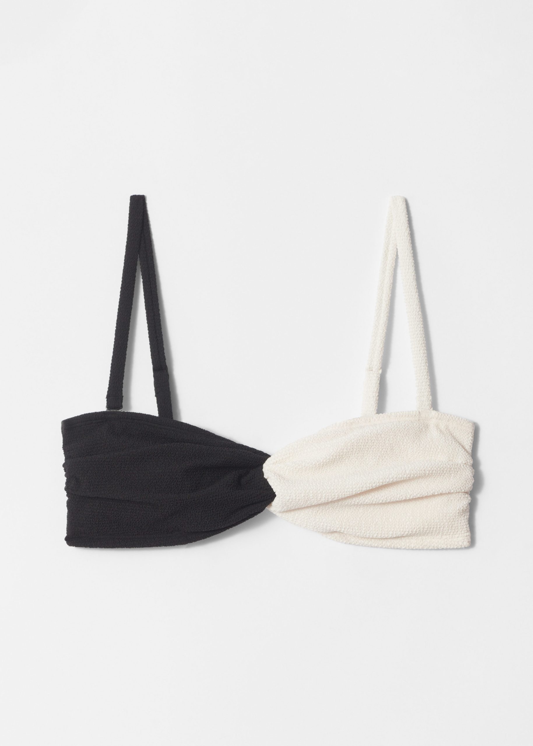 Bikini top featuring a textured finish, and removable straps for an optional bandeau look. Detailed with a centre-front twist.