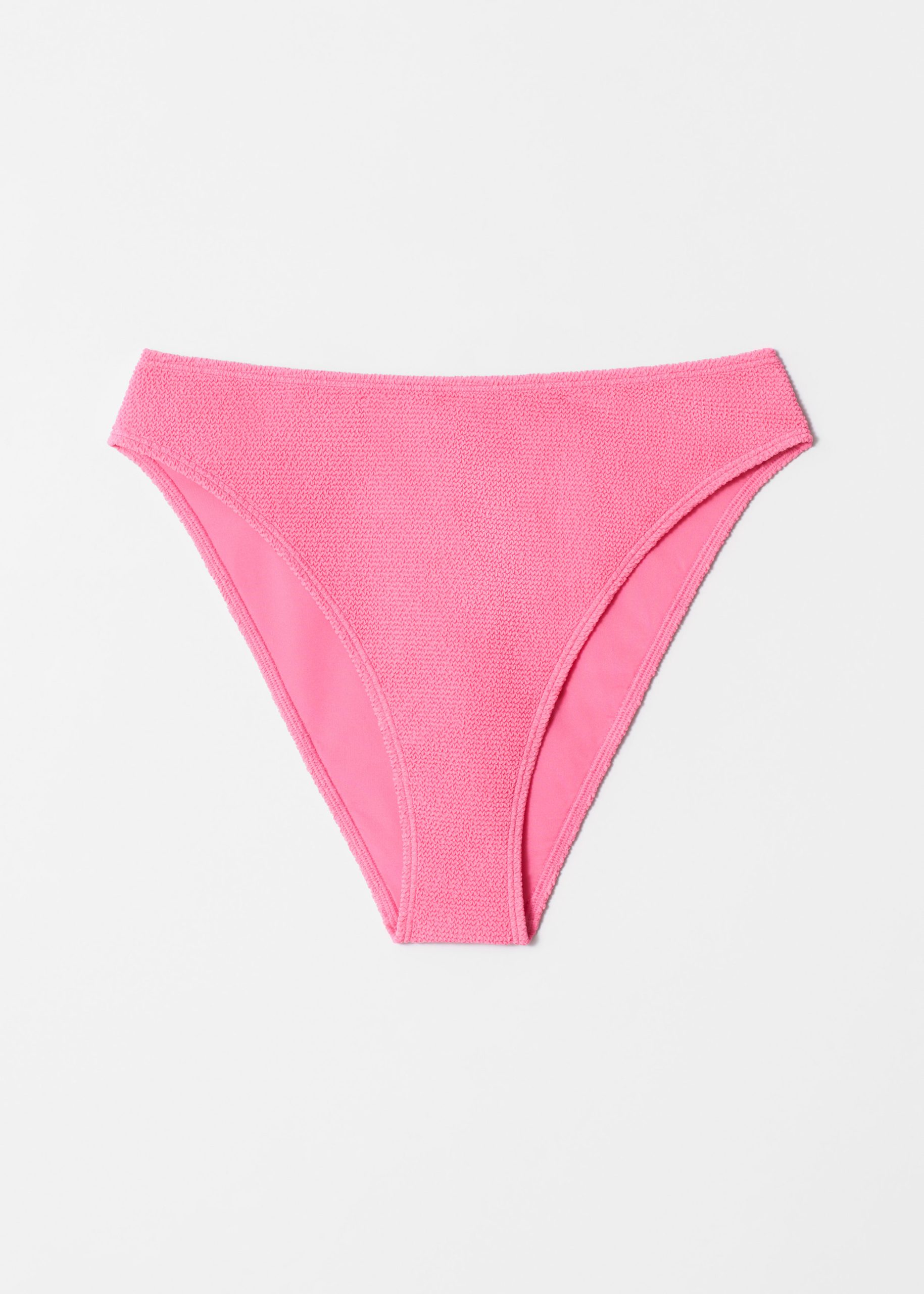 High-waist bikini briefs designed with a high-cut leg and a textured finish.