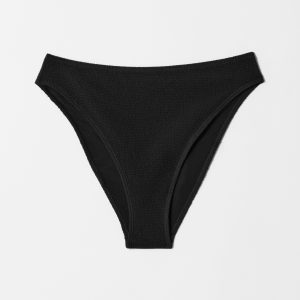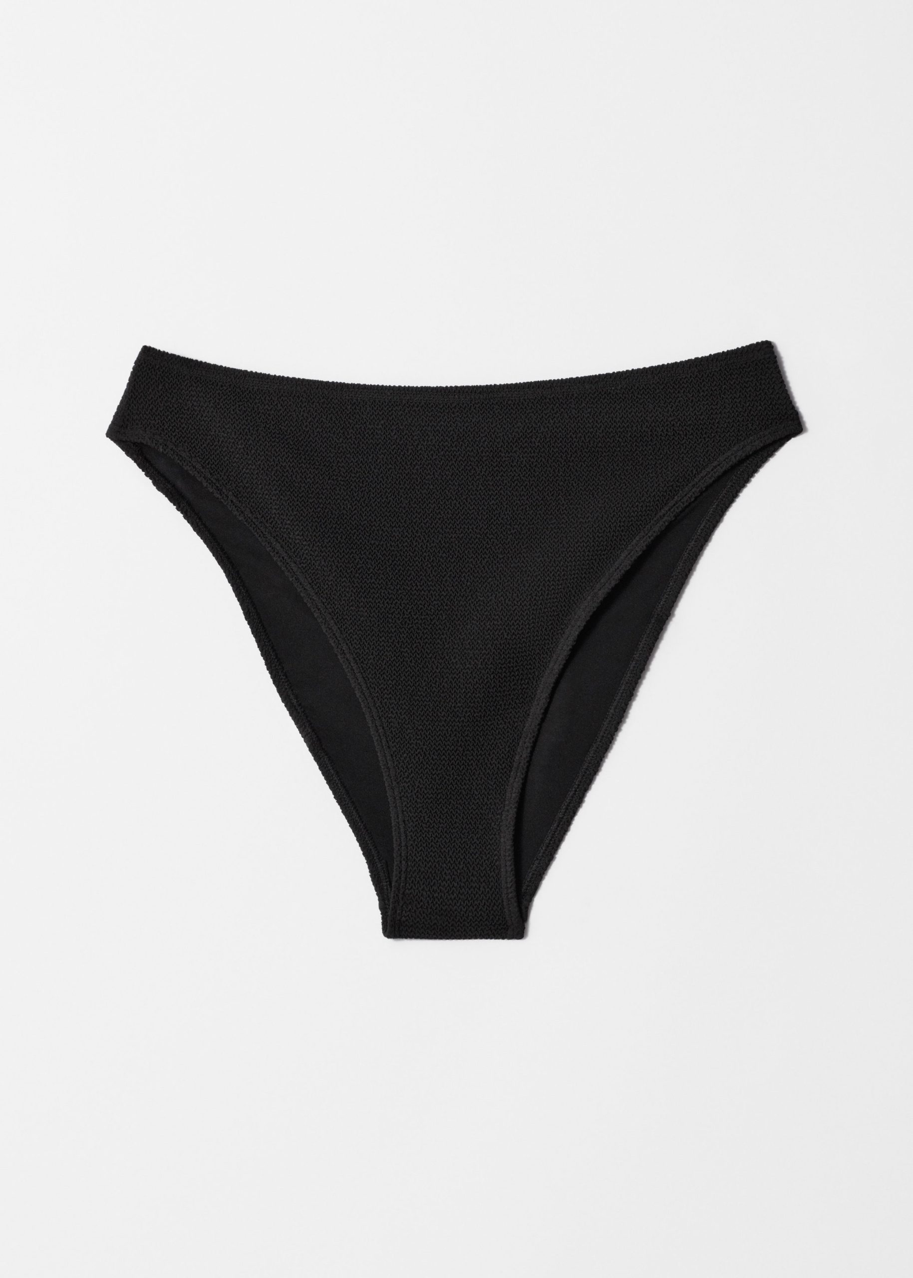 High-waist bikini briefs designed with a high-cut leg and a textured finish.