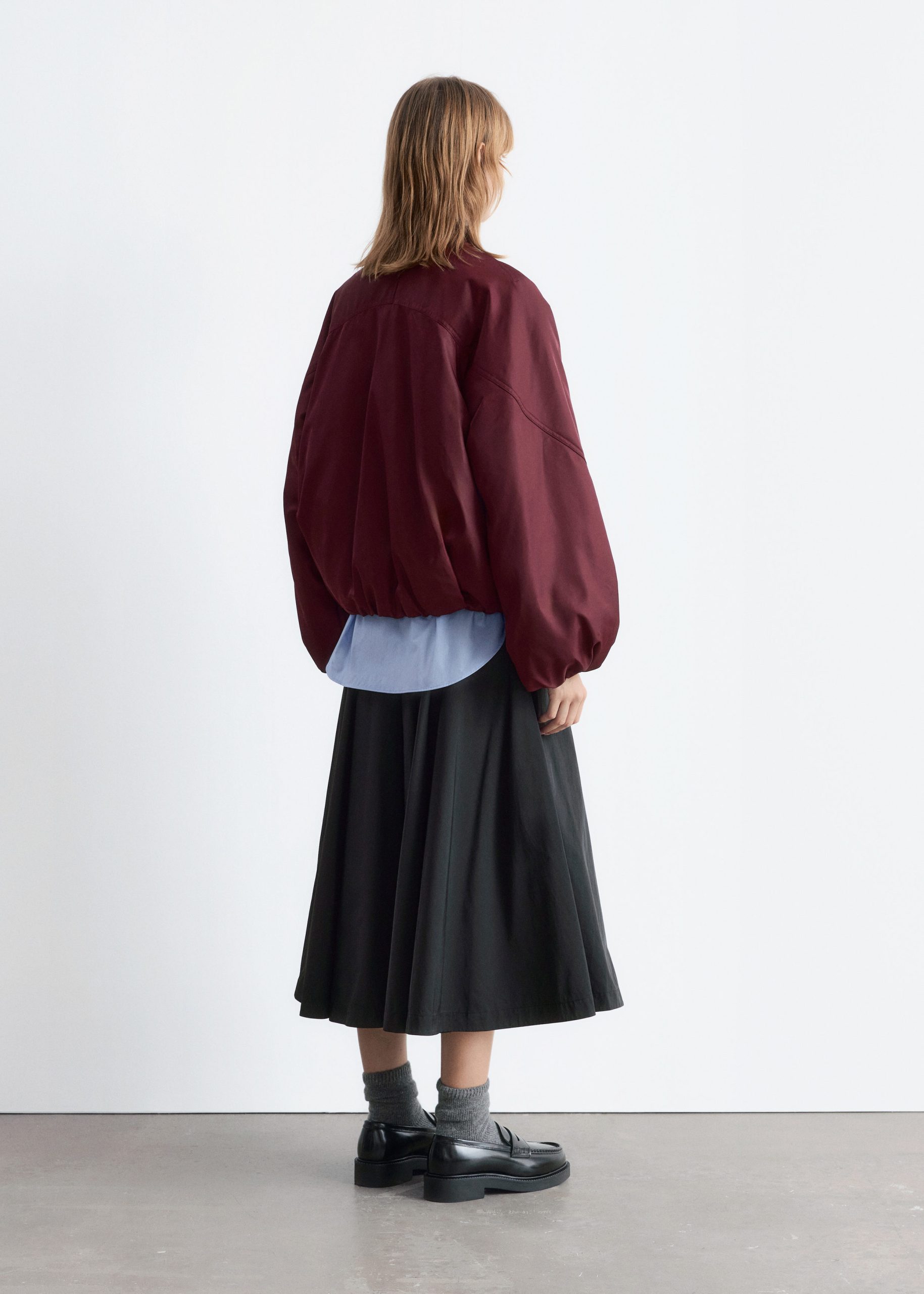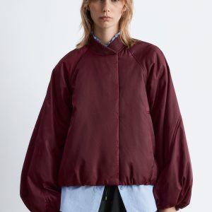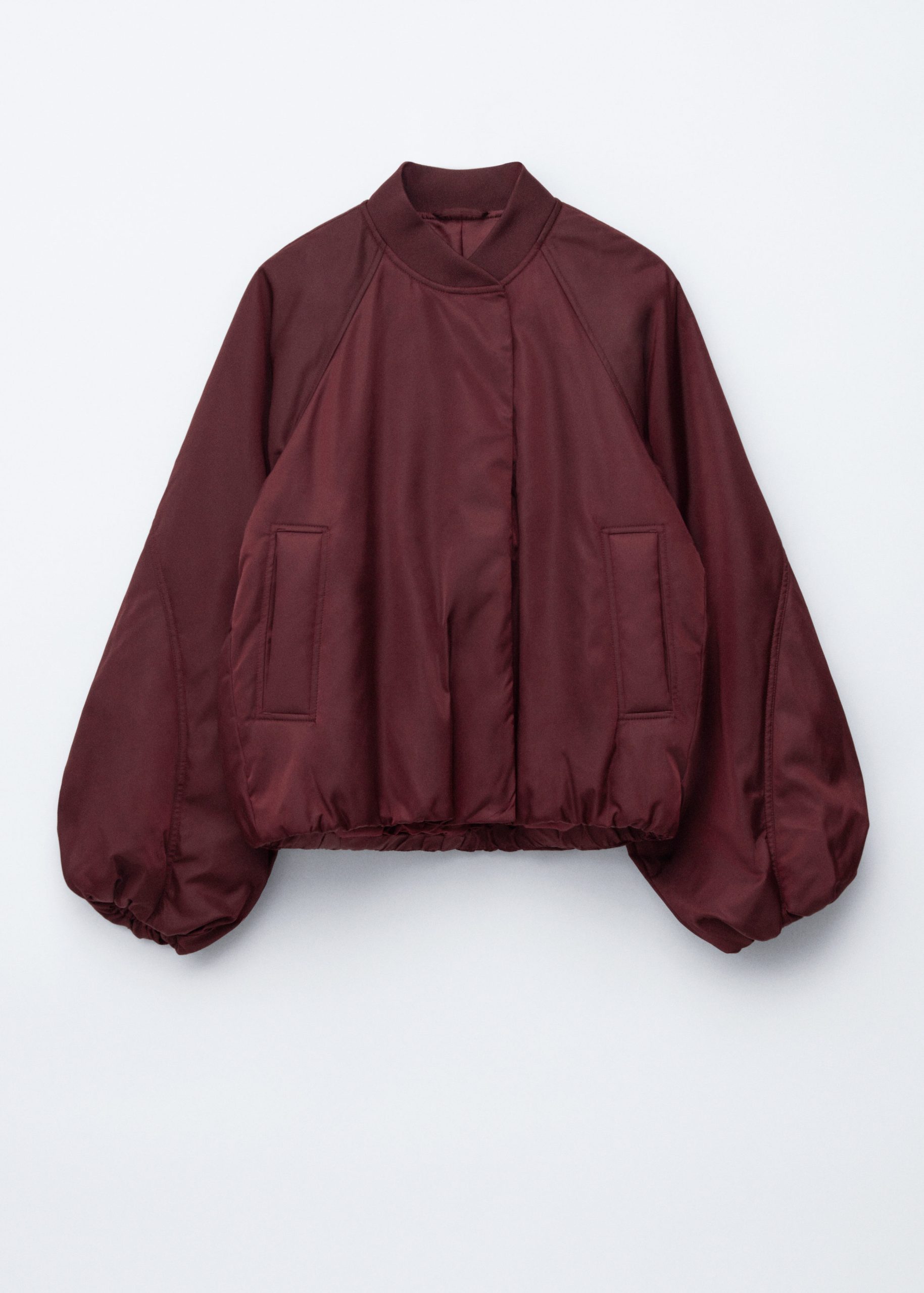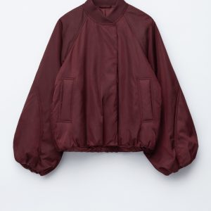 Padded bomber jacket with a technical finish. Designed with billowy sleeves and duo welt pockets.