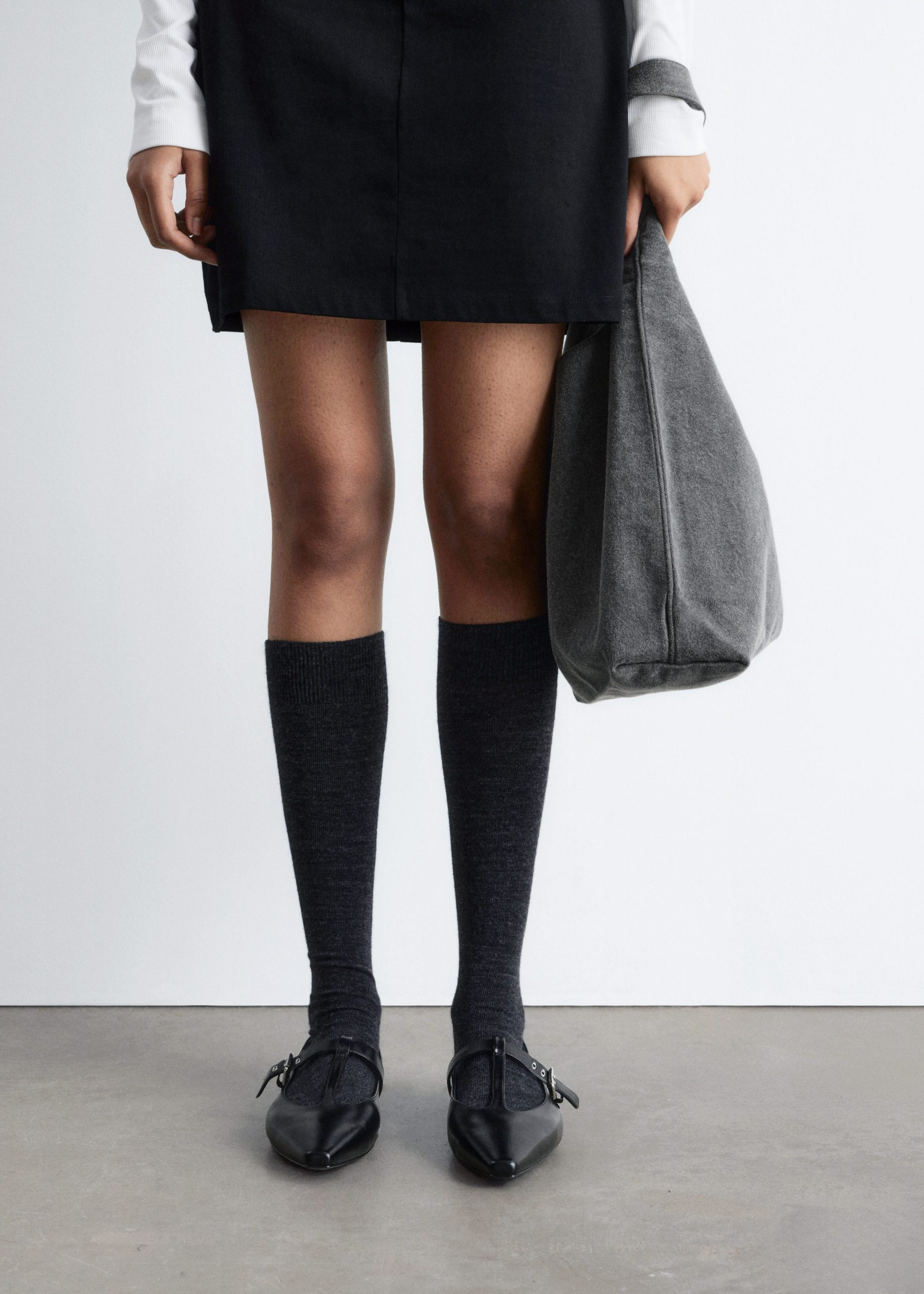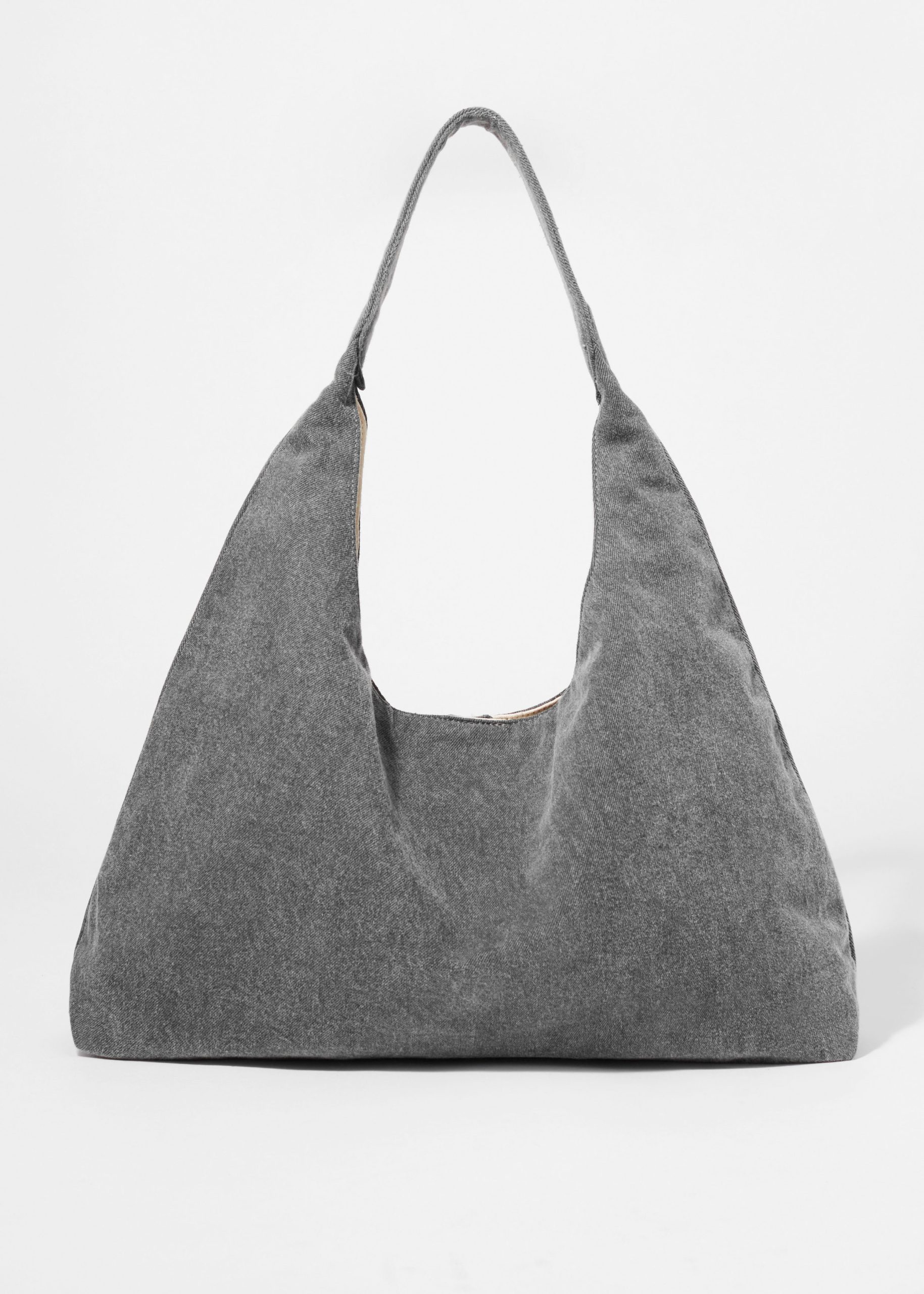 Generous tote bag crafted from washed cotton denim. Finished with an inner pocket and a concealed snap closure.