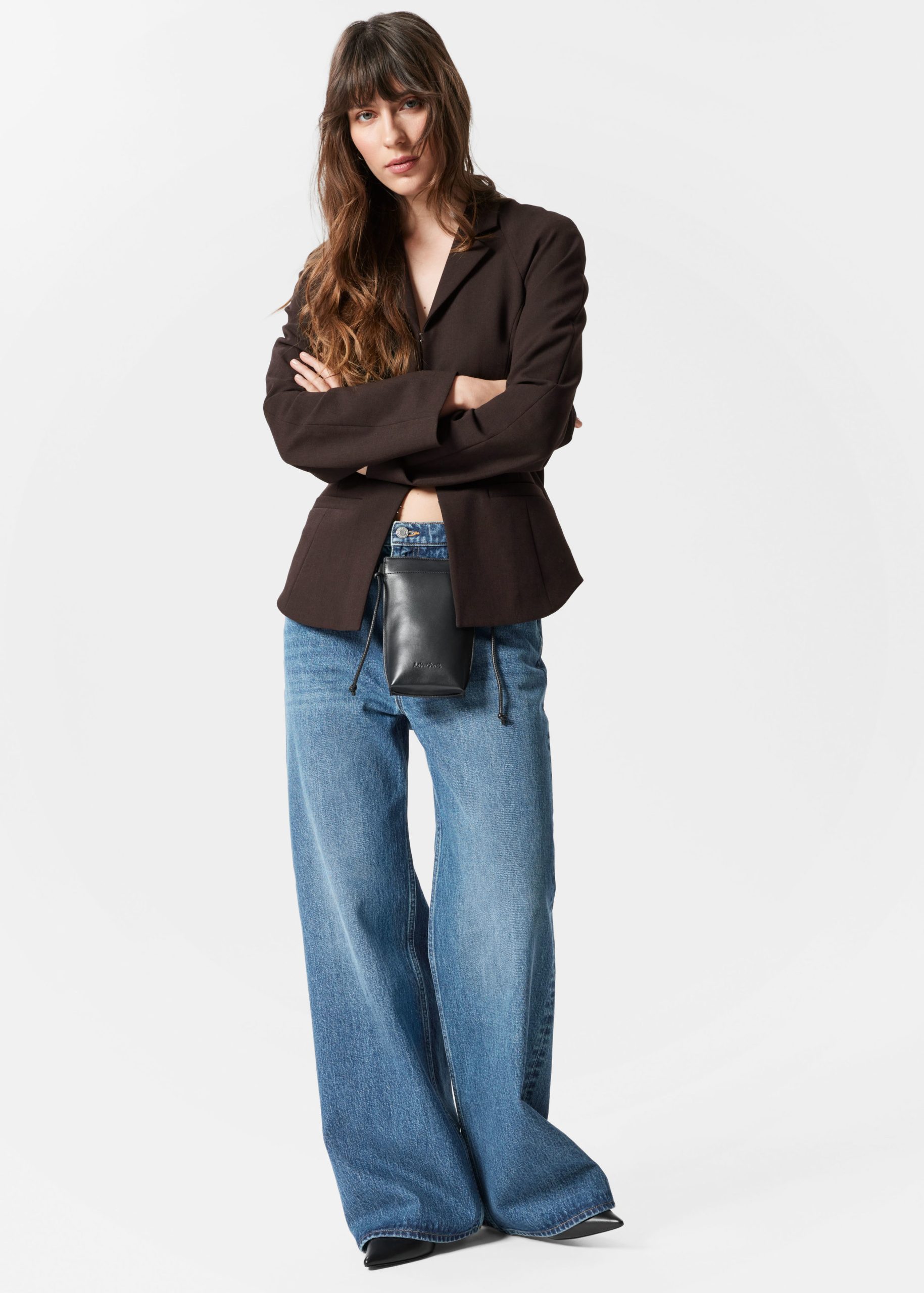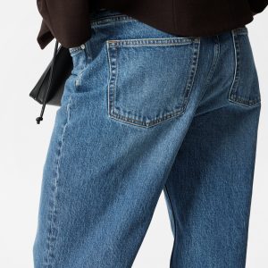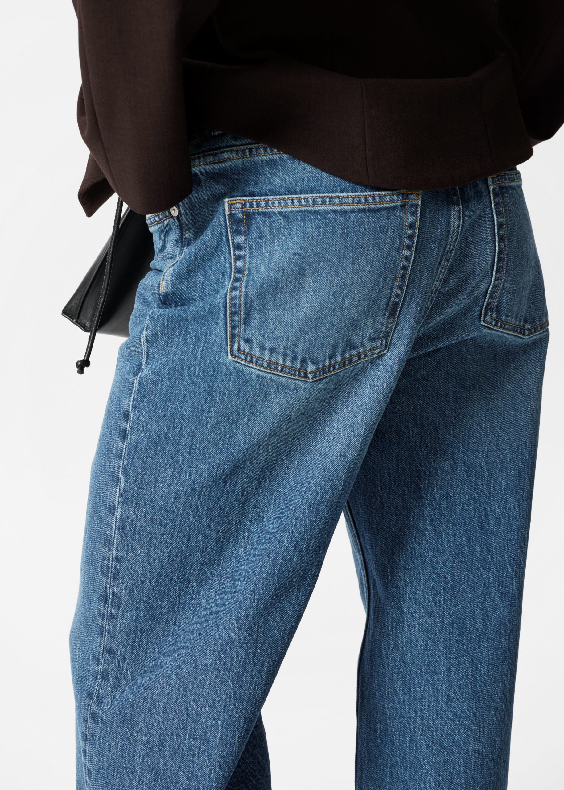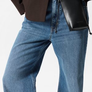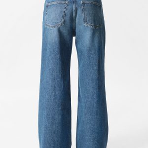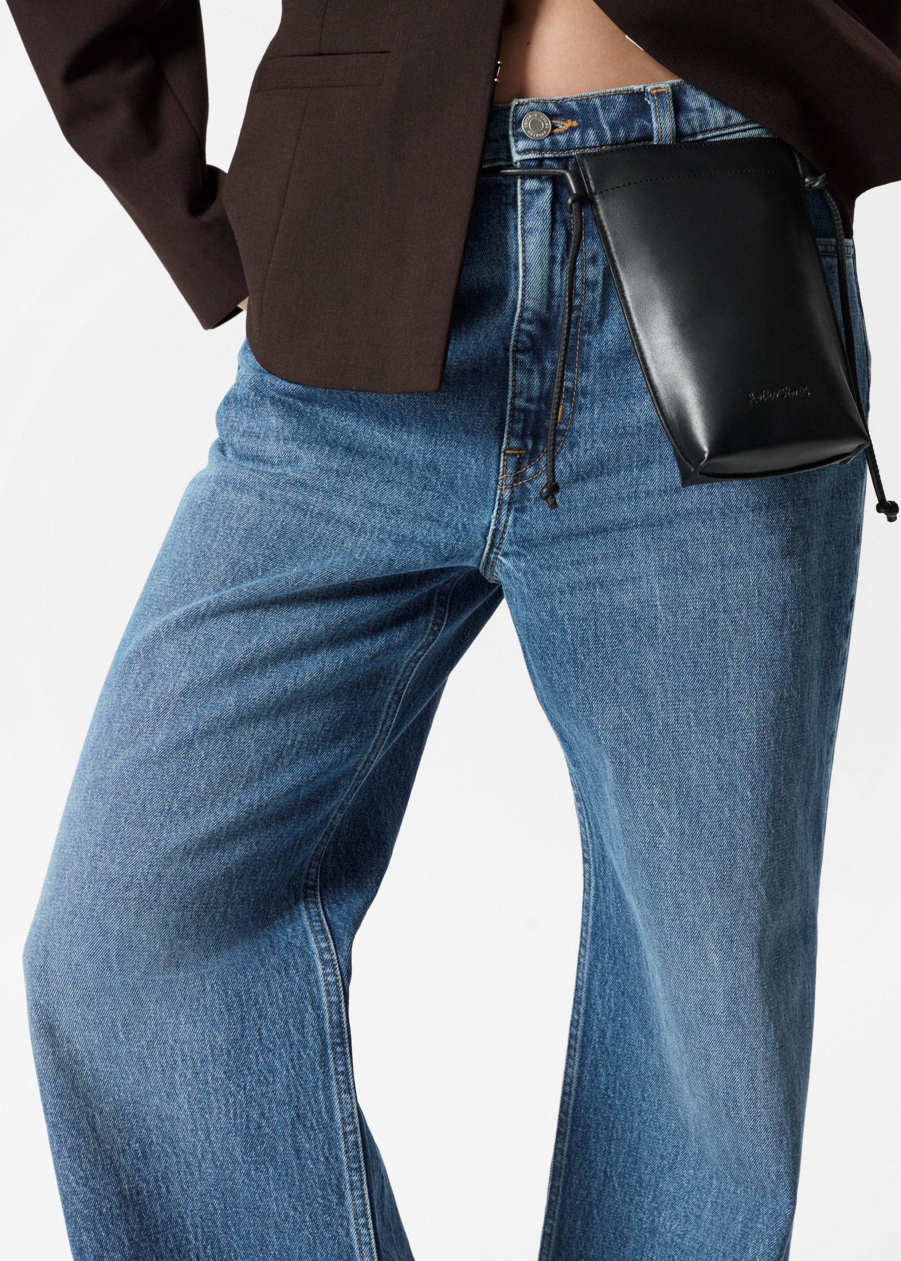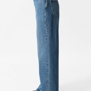 High waisted jeans featuring long, wide legs and a classic 5-pocket denim finish.