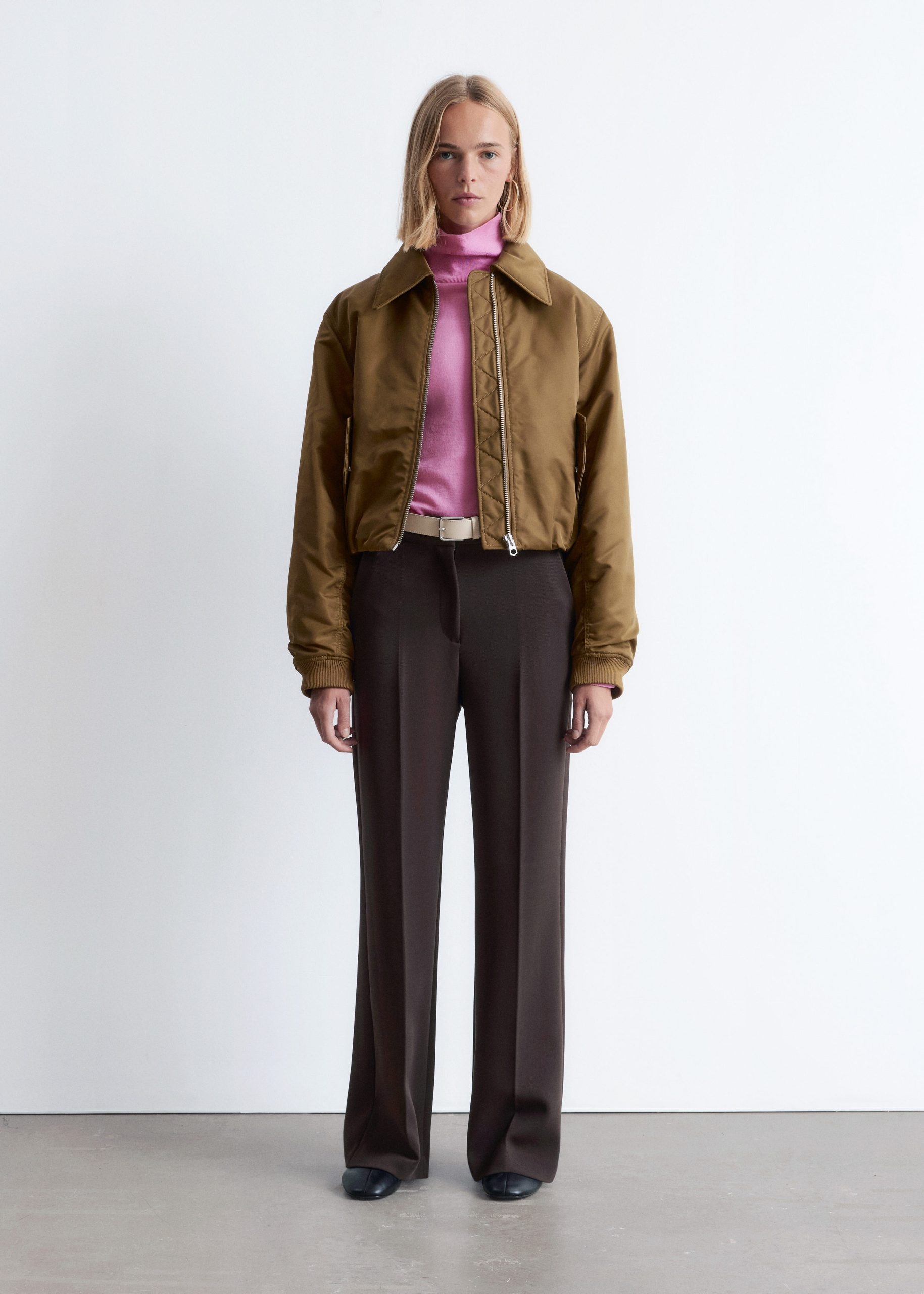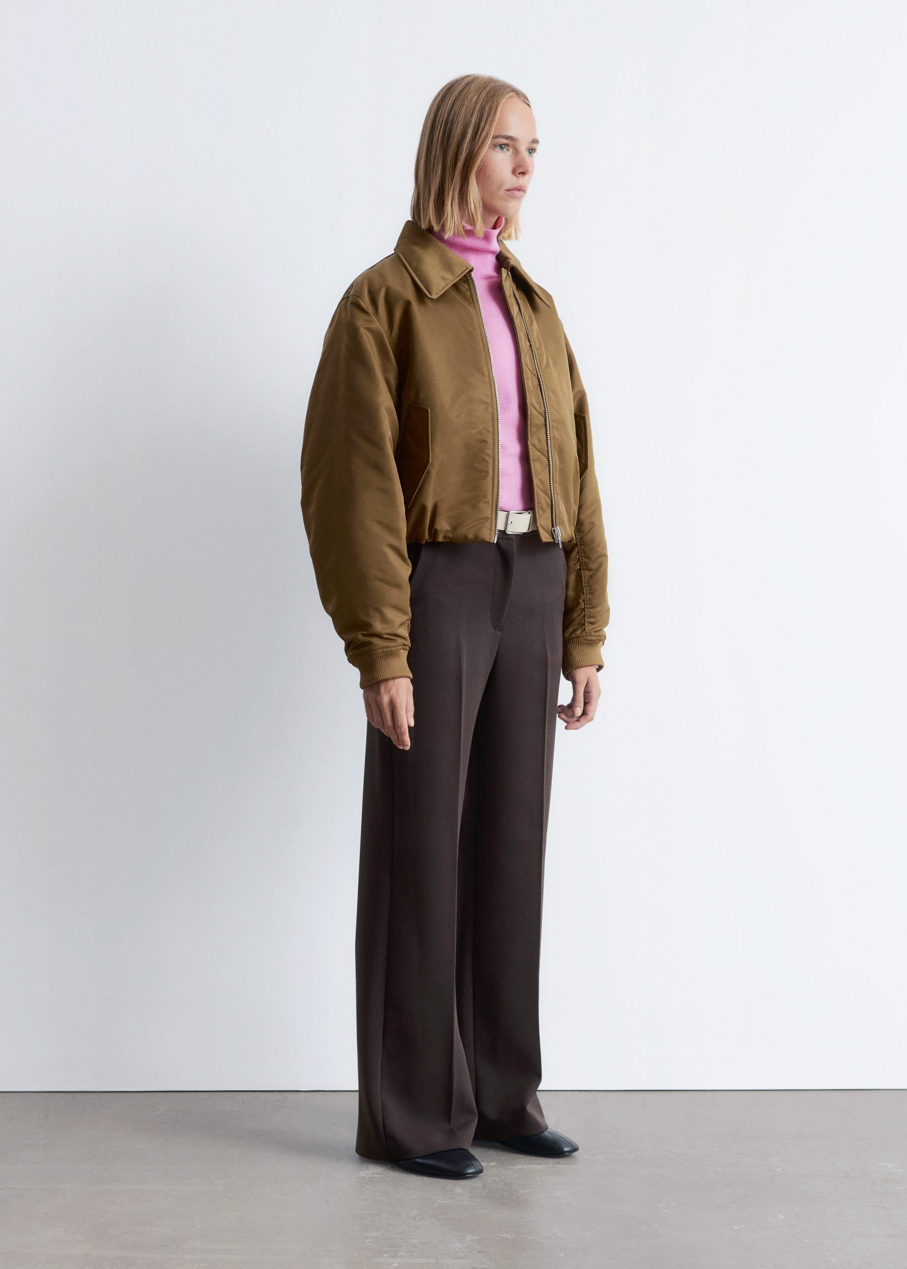 Wide trousers finished with press creases and duo slanted pockets