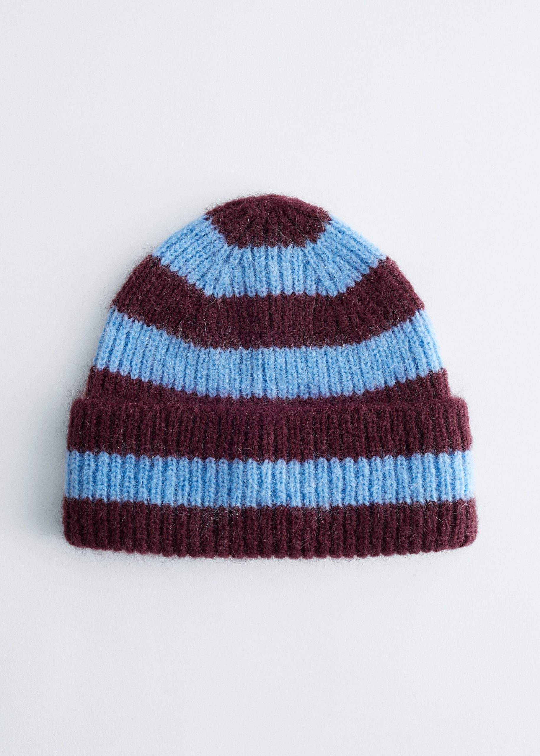 Made from a blend of softest mohair and wool, this rib-knit beanie offers a timeless design. Featuring a wide brim that can be worn folded or unfolded.