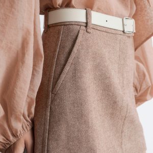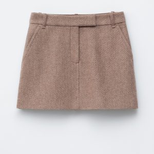 This mini skirt is crafted from a twill wool-blend. Cut in a clean, A-line silhouette, it features a regular waist, slanted side seam pockets, and a zip fly with a hook-and-bar closure.