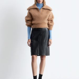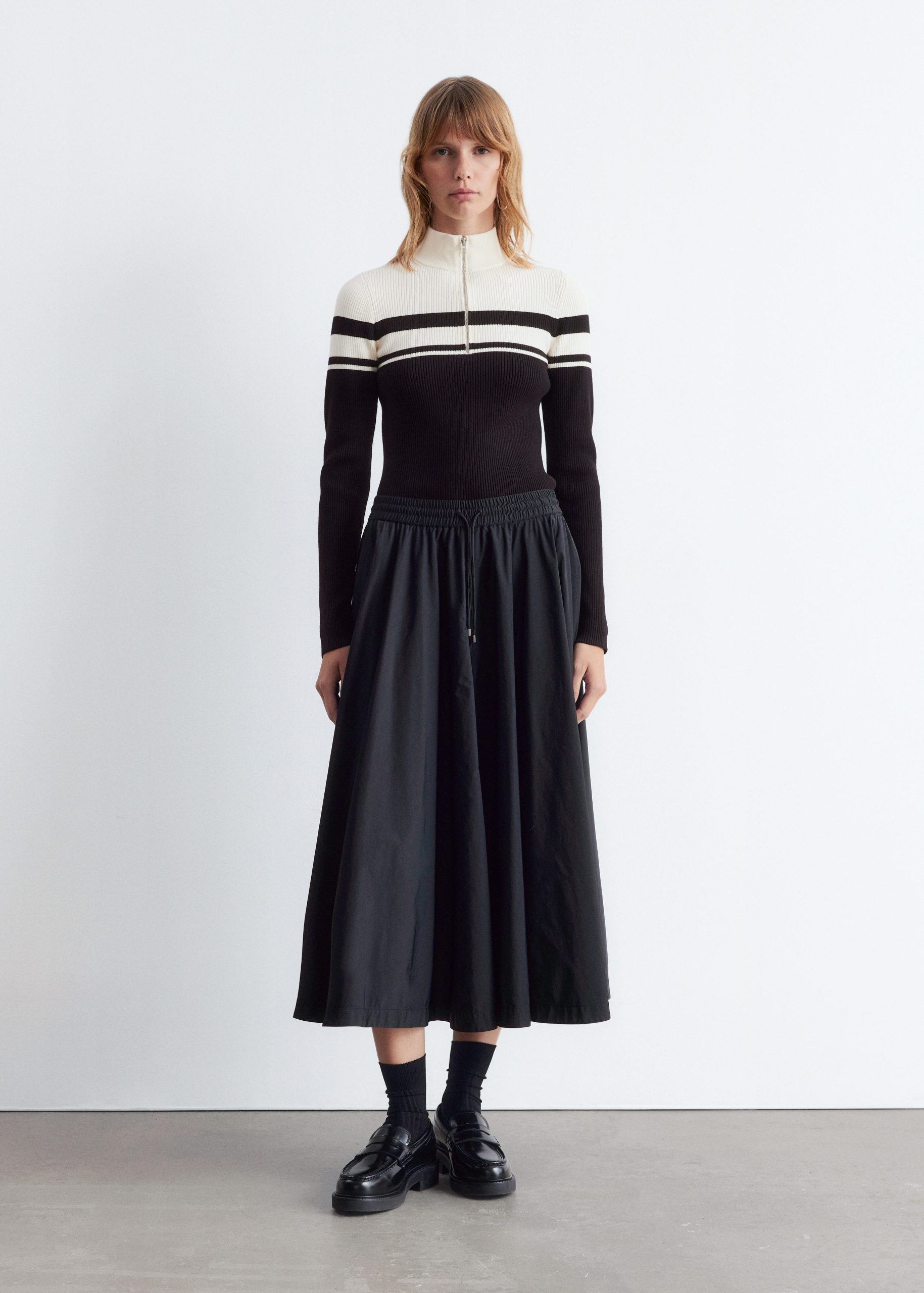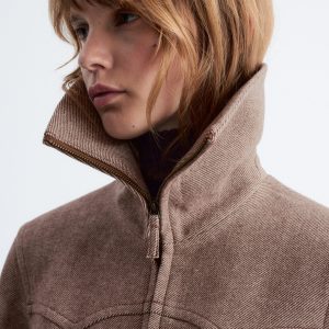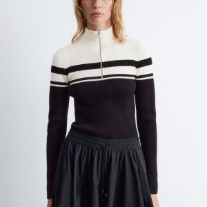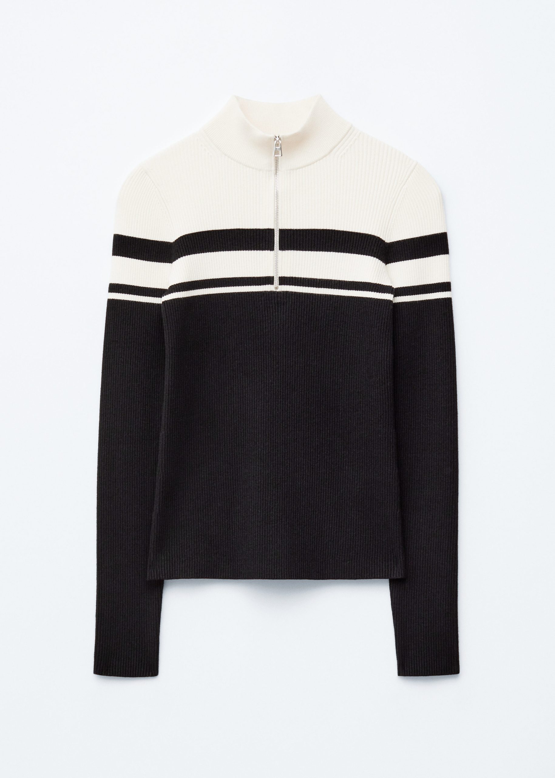Rib-knit jumper with a mock neck and zip at the top.